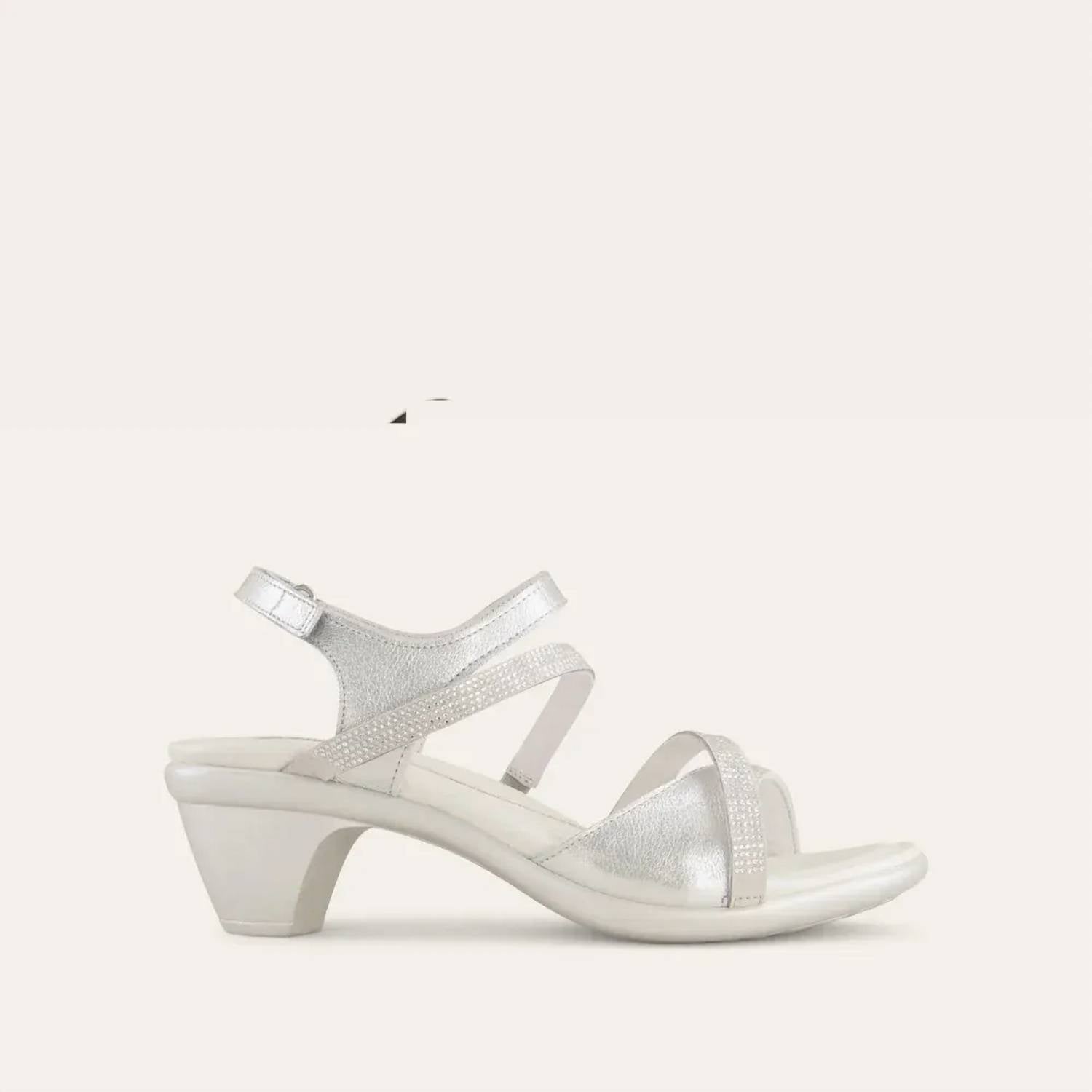 This sandal will take you from brunch to dinner and everything in between. The Innovate is the perfect backstrap heel for all of your festive events! This sandal has a hook and loop backstrap and gore at the middle straps creating a custom fit. The Innovate has a padded front strap for ultimate comfort. The feminine rhinestone accents make this shoe stand out from the crowd. Naot's anatomic cork and latex footbed is wrapped in leather with a microfiber center to prevent slipping and molds to the shape of the foot with wear. The Avantgarde Collection features a TPR sole with a metal shank. This sole offers the look of a 2" heel without the feel. Product Information Fit: True to size, half sizes should size up Sole Material: Thermoplastic Rubber Heel Height: 2" Width: Medium Slip Resistant: No Orthotic Friendly: No Removable Footbed: No