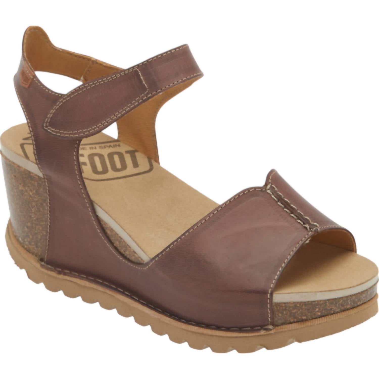 Step into boho chic elegance designed for your ultimate summer travels. Chocolate-hued wedges feature a comfortable peep toe and adjustable hook-and-loop strap, crafted in Spain with a leather upper, textile lining, and synthetic sole. The 2 3/4" wedge heel is accompanied by a 1 1/4" platform, ensuring mid-range height and comfort with a Zen footbed to massage pressure points and enhance circulation. Ideal for elevating your travel wardrobe, promise style and relief in every step.