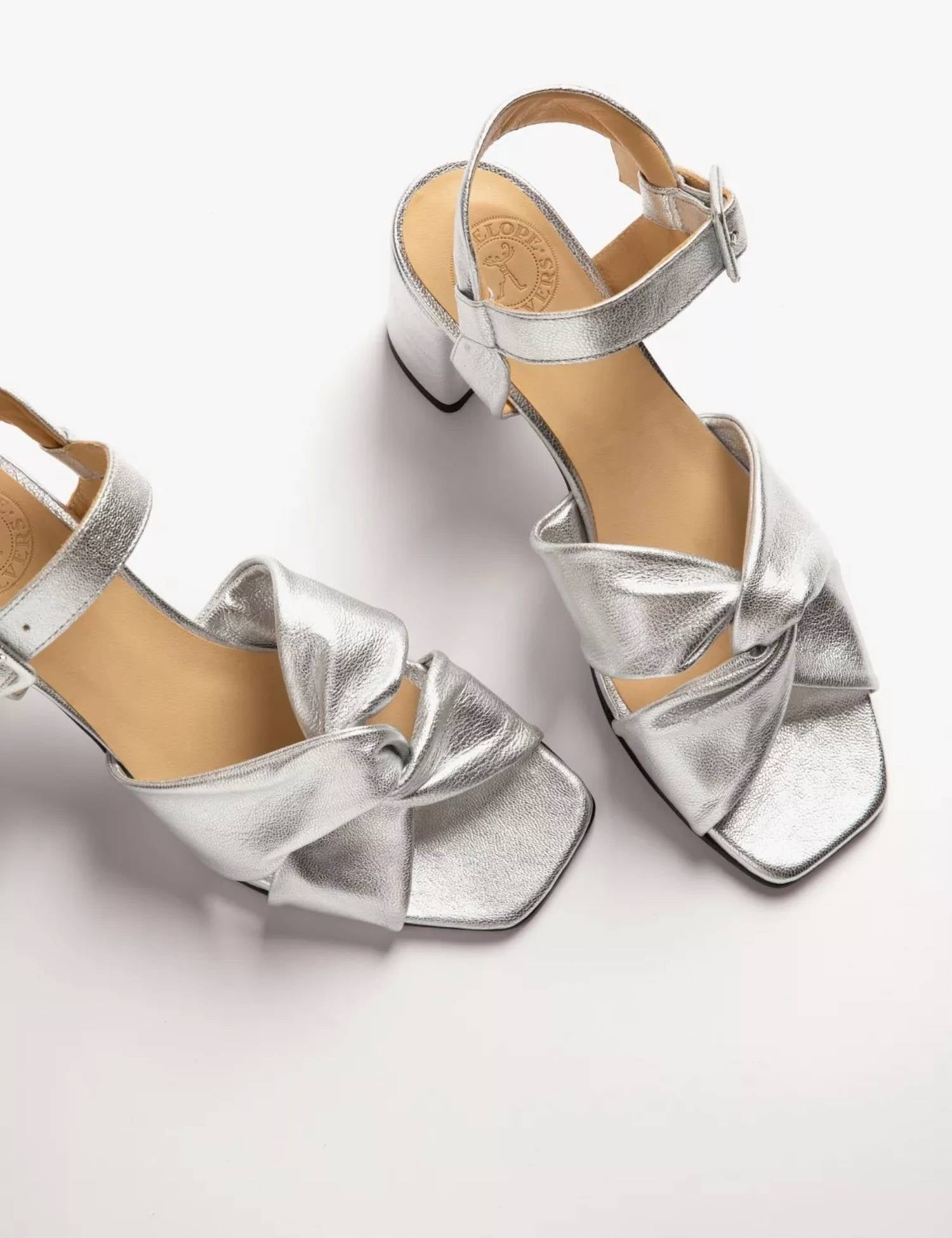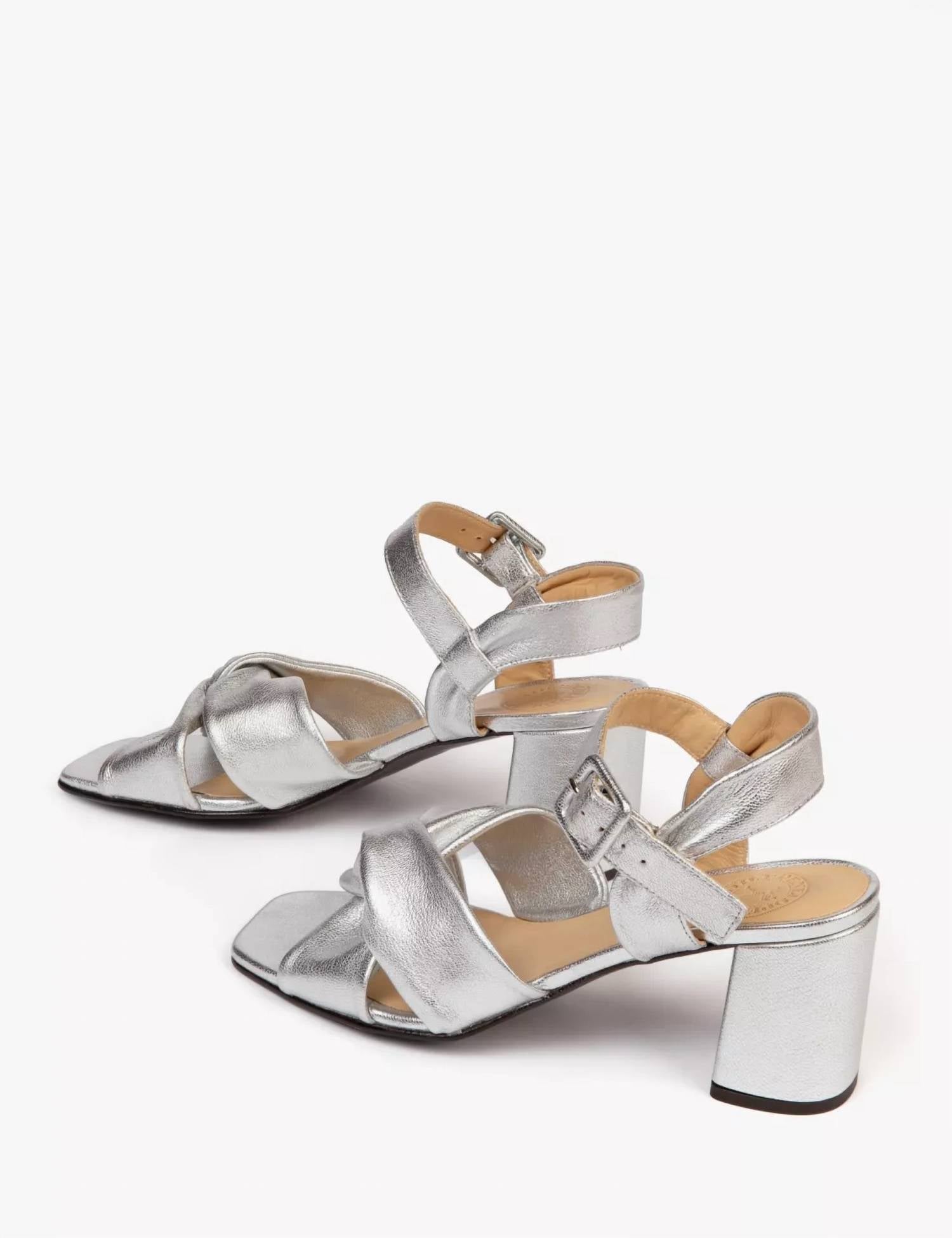 Flowy dresses, cropped pants, and even jumpsuits... this sandal works with them all! Elevate your special occasions with the Women's Infinity Metallic Sandal by PENELOPE CHILVERS. Crafted from stunning metallic silver leather, these elegant sandals feature an ankle strap with a covered buckle for a perfect fit. The design is complemented by a chic knotted detail across the toe, adding a touch of sophistication. Ideal for garden parties, evening cocktails, and weddings, the Infinity will give your feet a truly dressed-up look that captures attention and complements your style effortlessly.