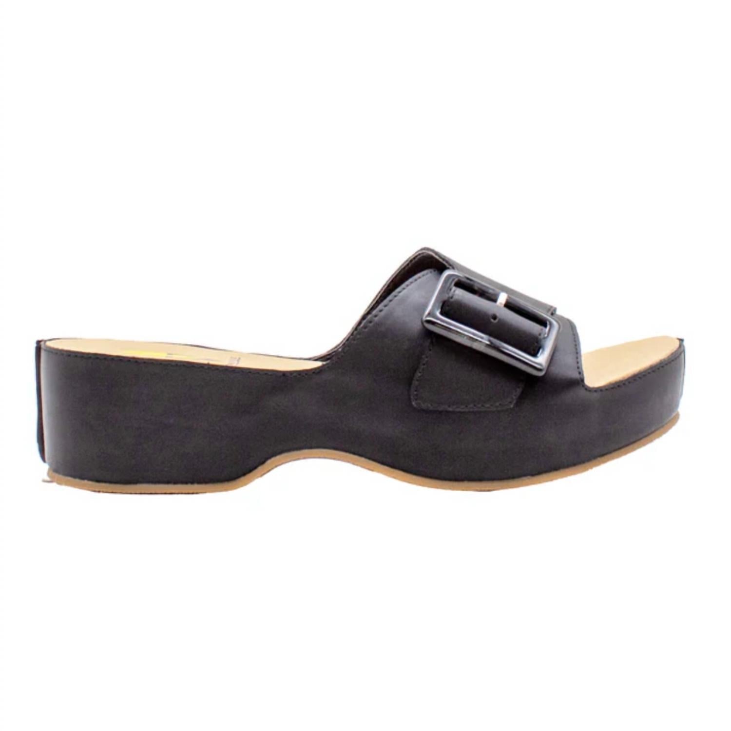 This sandal will take you from brunch to dinner and everything in between. Step into style with the Women's Bertha Sandals by PV Footwear, where elegance meets comfort. Featuring a chic tortoise shell buckle and a faux leather upper, these slide sandals include a cushioned EVA insole for all-day comfort. An over lasted 1.75” wedge heel, paired with a rubber outsole and synthetic lining, ensures durability and style. Perfect for casual outings, these sandals offer a convenient slip-on design with a round toe.
