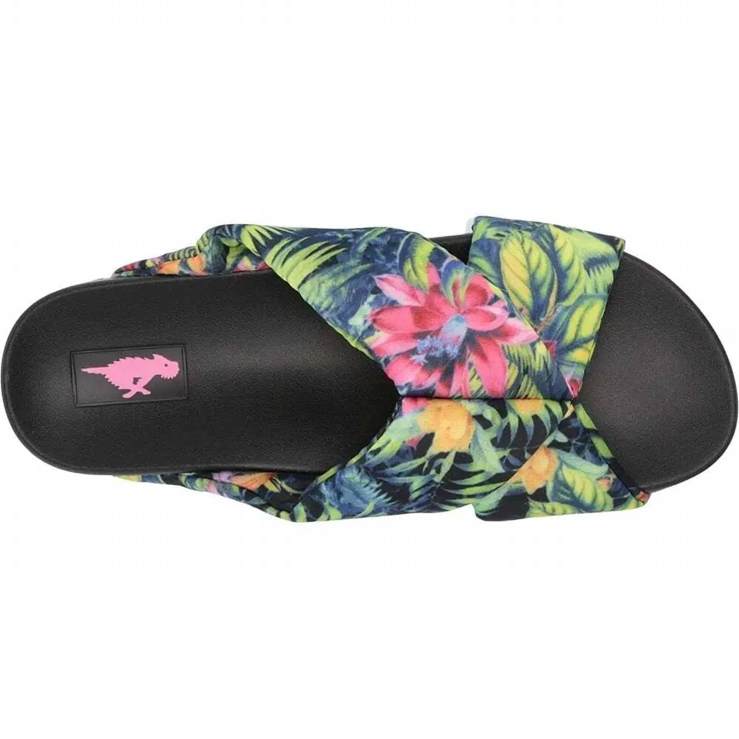 Flowy dresses, cropped pants, and even jumpsuits... this sandal works with them all!Tropical floral print criss cross sandals. Slip on and go styling. Lightweight footbed for extra comfort. Heel height .87 inches. Toe height .67 inches.