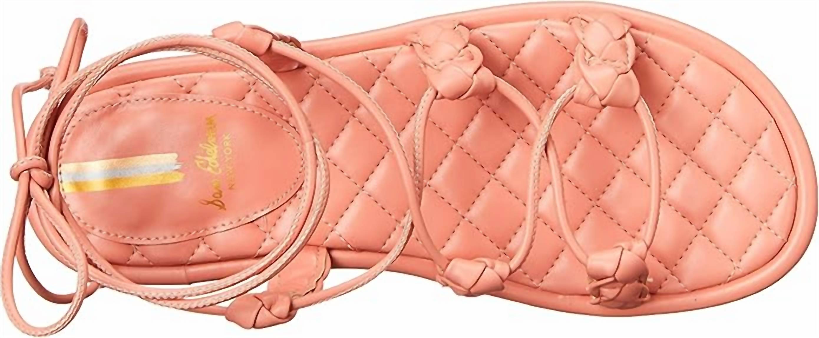 This sandal will take you from brunch to dinner and everything in between. Elevate your spring ensemble with the Sam Edelman Zariah Sandals, a chic choice for a boho-inspired look. These women's fashion sandals in Canyon Clay feature sleek man-made straps, a quilted footbed for added cushioning, and a lace-up closure at the ankle. Crafted with both a synthetic upper and sole, these open-toe sandals provide a supportive and stylish choice for any vacation occasion. With their distinctive design, they promise a standout appearance from every angle.