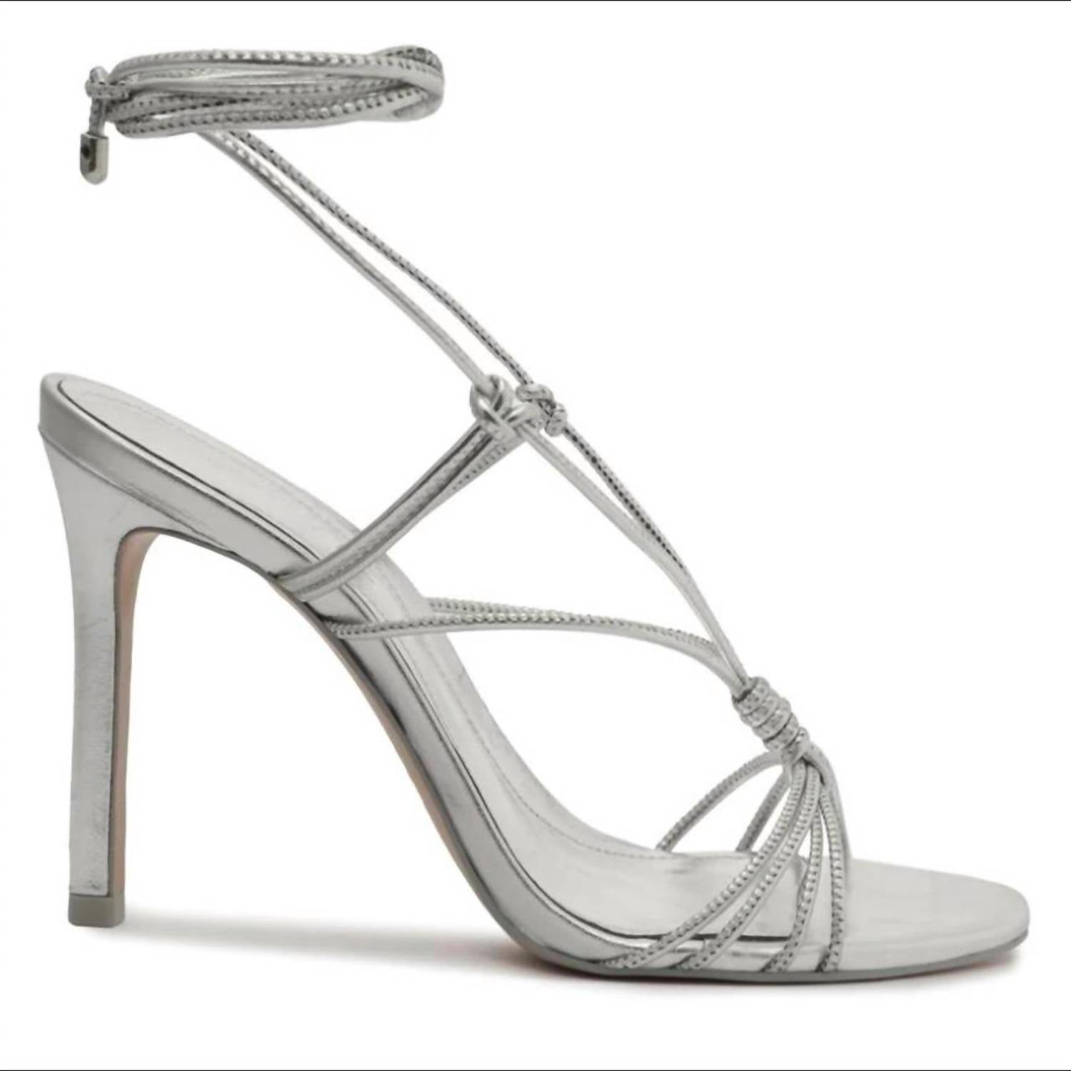 Don't be deceived, these heels are comfy as can be. Step into elegance with the Women's Azealia Metallic Leather Wrap Sandal by SCHUTZ, crafted in a shimmering silver that adds a touch of glamour to any occasion. Perfect for summer and events like anniversaries or Valentine's Day, these sandals feature an open toe and are designed with a sophisticated stiletto heel to elevate your look. Embrace the trend of quiet luxury with these stunning shoes, ideal for adding a fashionable edge to your wardrobe. Enjoy the fusion of style and comfort tailored for the modern woman.