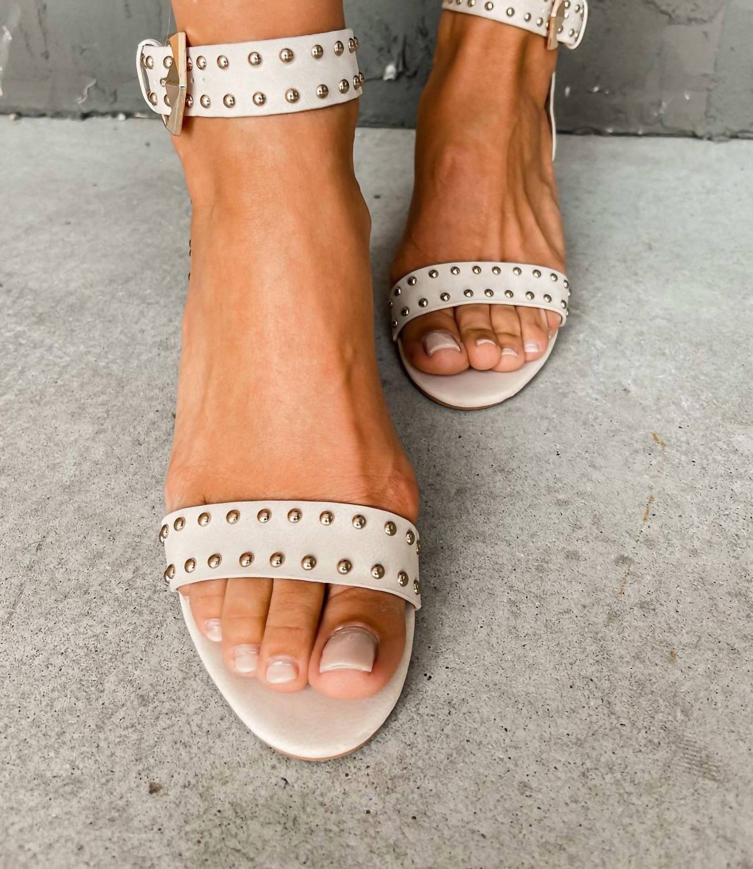 This sandal will take you from brunch to dinner and everything in between. Step into the season with the Women's Studded Sandals by SHU SHOP, a chic addition to your footwear collection. These nude sandals feature a single strap across the front and an adjustable ankle strap, adorned with striking gold studded accents. Constructed with a flattering 2-inch block heel and a comfortable round toe shape, these sandals are perfect for any occasion, from anniversaries to spring outings. Embrace effortless style with these preppy sandals, designed to be a must-have wardrobe staple this season.