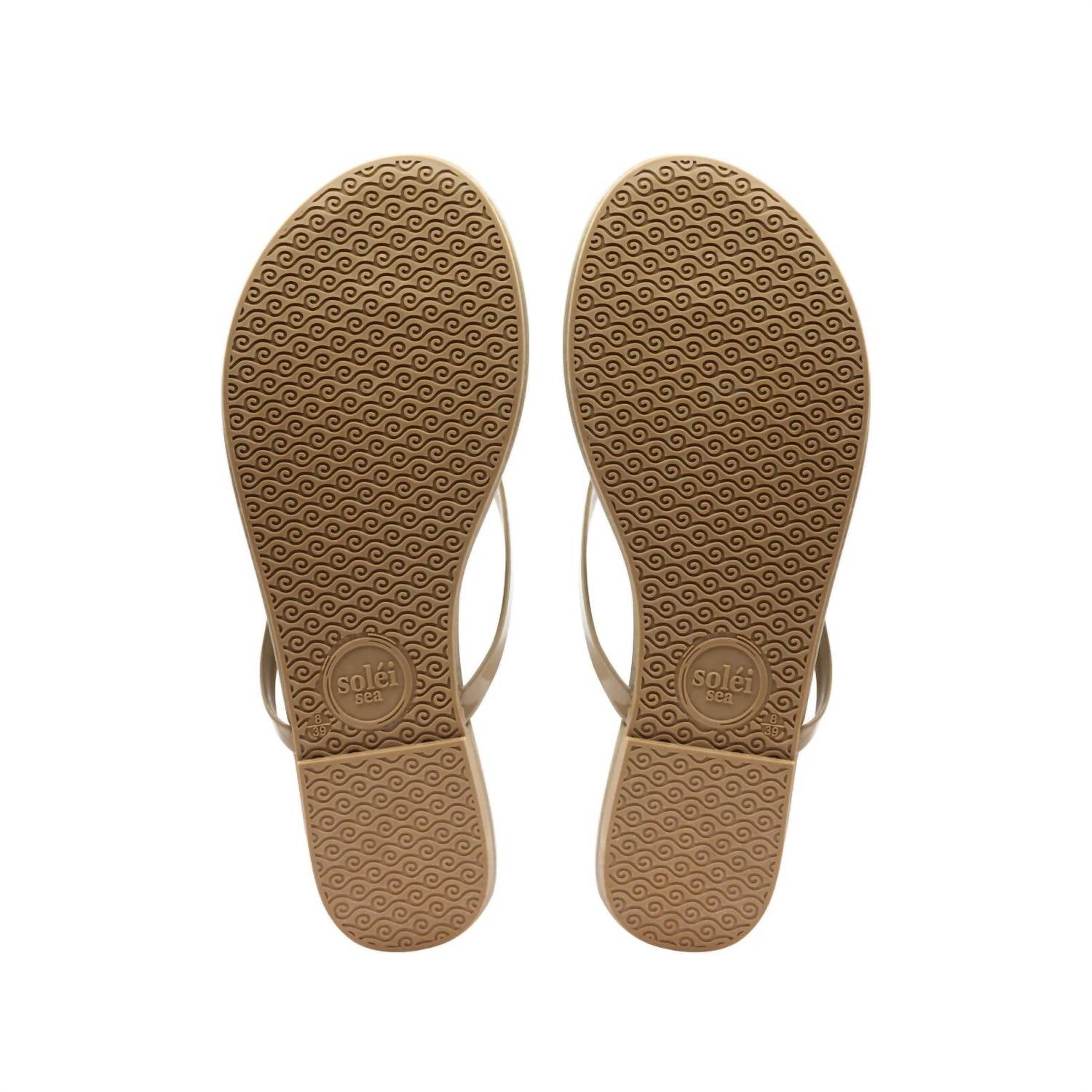 Slim profile thong sandals. Cushioned arch support. Narrow straps for comfort. Vegan leather upper. Recycled outsole. Slim sole and straps. Cushioned footbed. Half-size wearers size up.