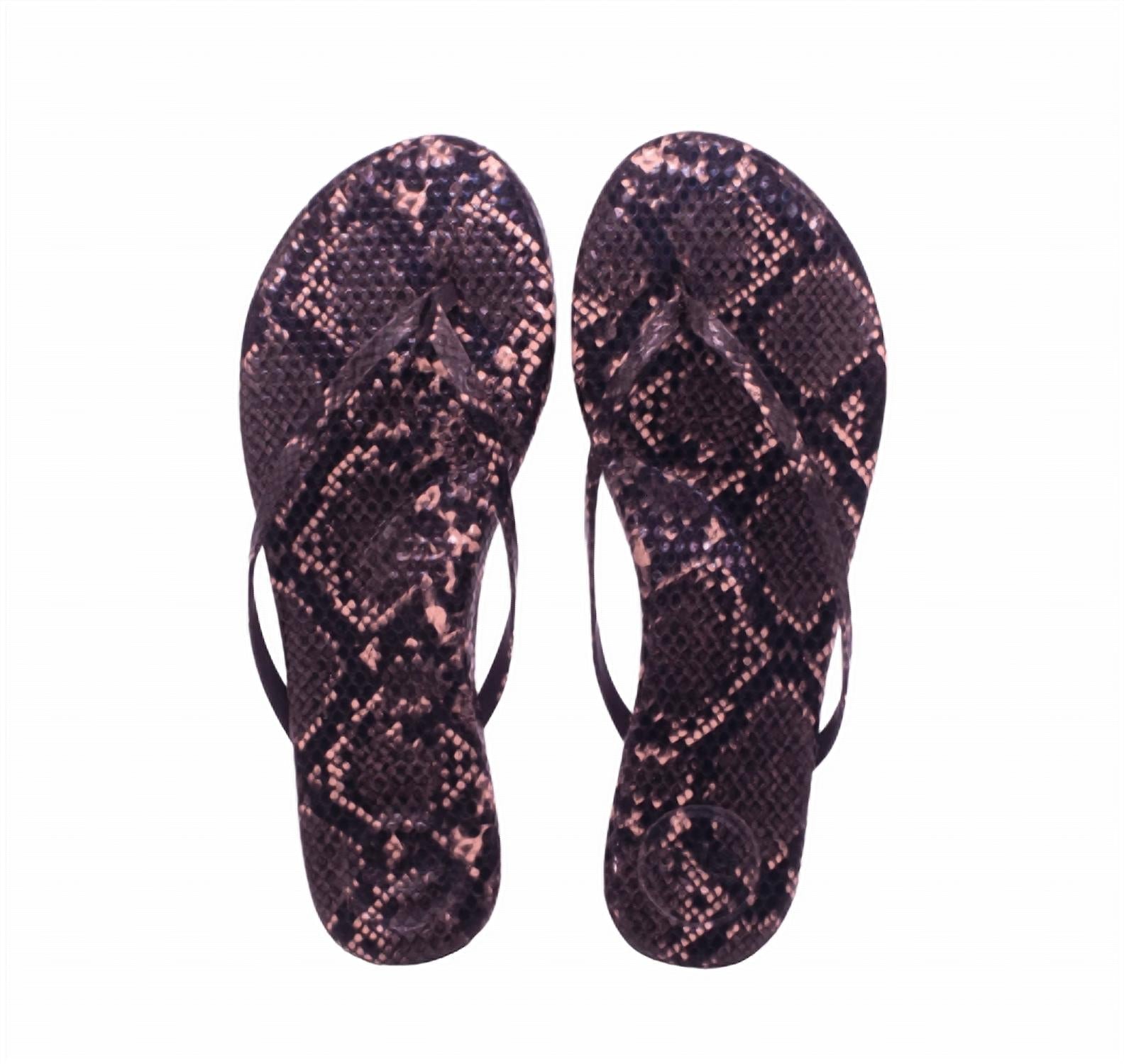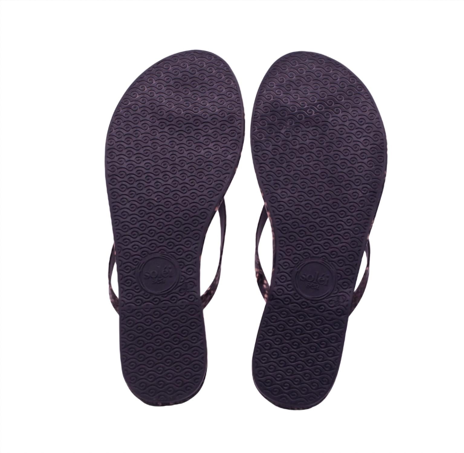 Classicly cute and all-day-wearable. We love this sandal. Flip-flop sandal designed for minimal aesthetics and maximal comfort. Features clean, narrow straps, a vegan leather upper, and a recycled outsole. Slim sole and straps with cushioned arch support and footbed.