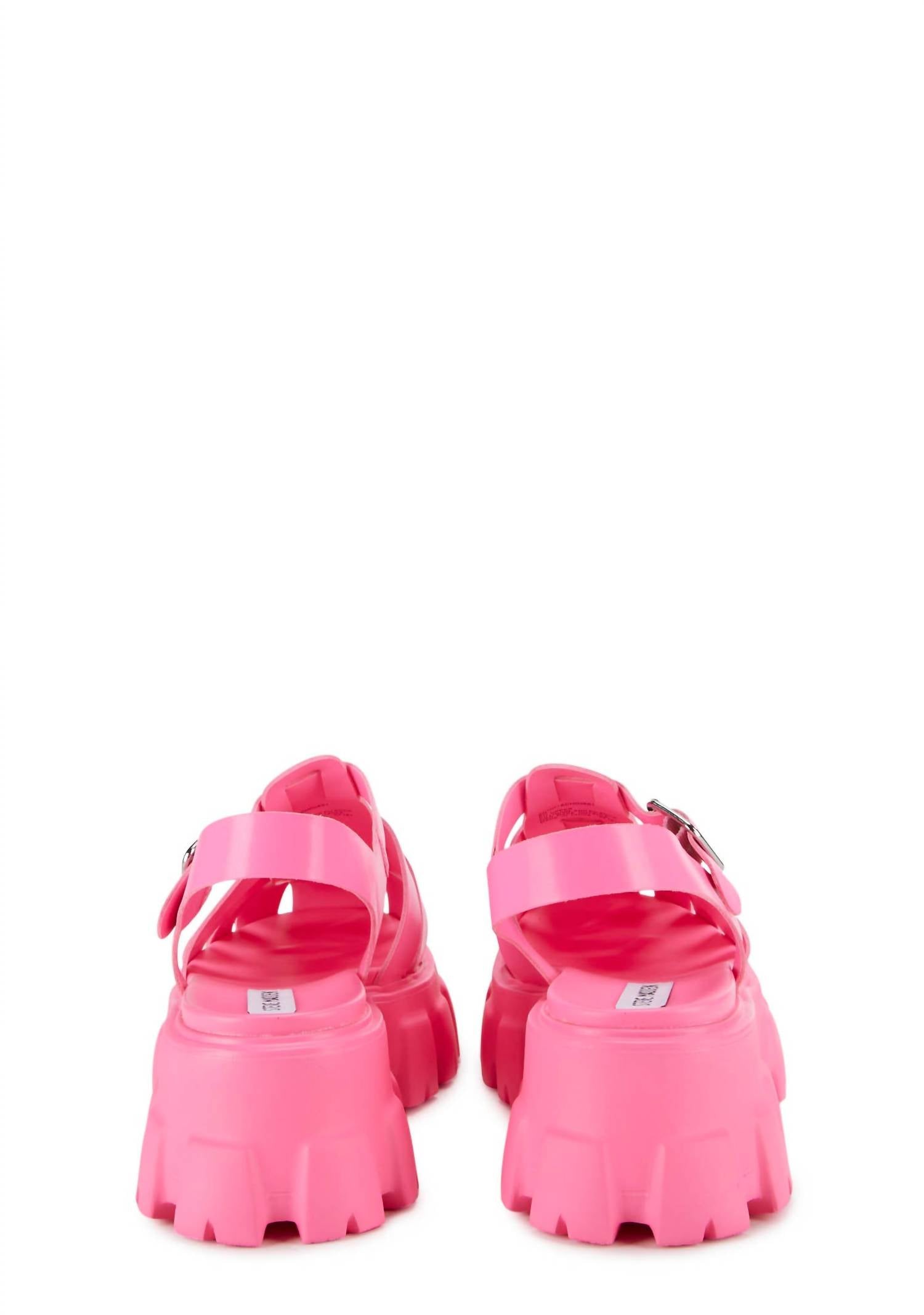 Classicly cute and all-day-wearable. We love this sandal. Step into timeless style with the Women's Echo Sandals by STEVE MADDEN in a playful pink hue. Designed with a classic fisherman strap and a rugged, lugged sole, these sandals feature a 2-inch platform heel and a 1.5-inch platform for added height and comfort. Crafted from synthetic materials, they offer a secure fit with a buckle closure at the ankle strap.