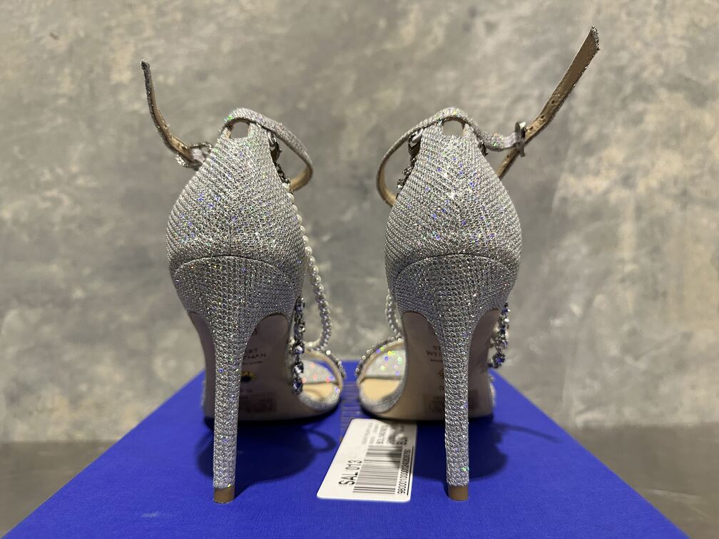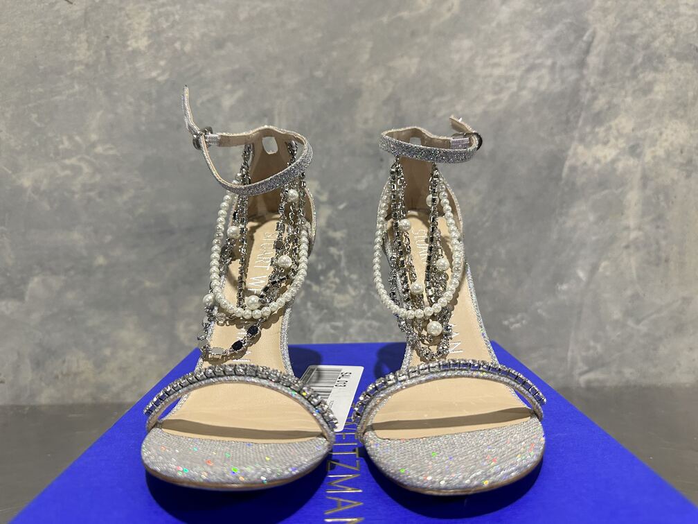 Steal the center stage wearing the stunning Stuart Weitzman® Nudist Pearldrop 100 Sandals| perfect to go with your casual or formal looks. |Textile upper and leather lining. |Leather and textile insole. |Slide-in style. |Allover metallic shimmer.|Pearl and crystal embellishment on the straps for added style.