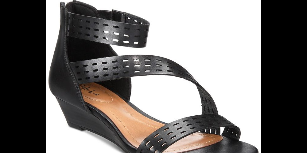 Style & CO Women's Giordi Perforated Strap Wedge Sandals Black Size 9