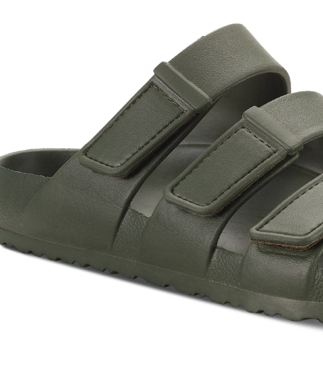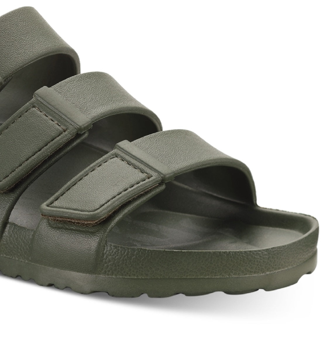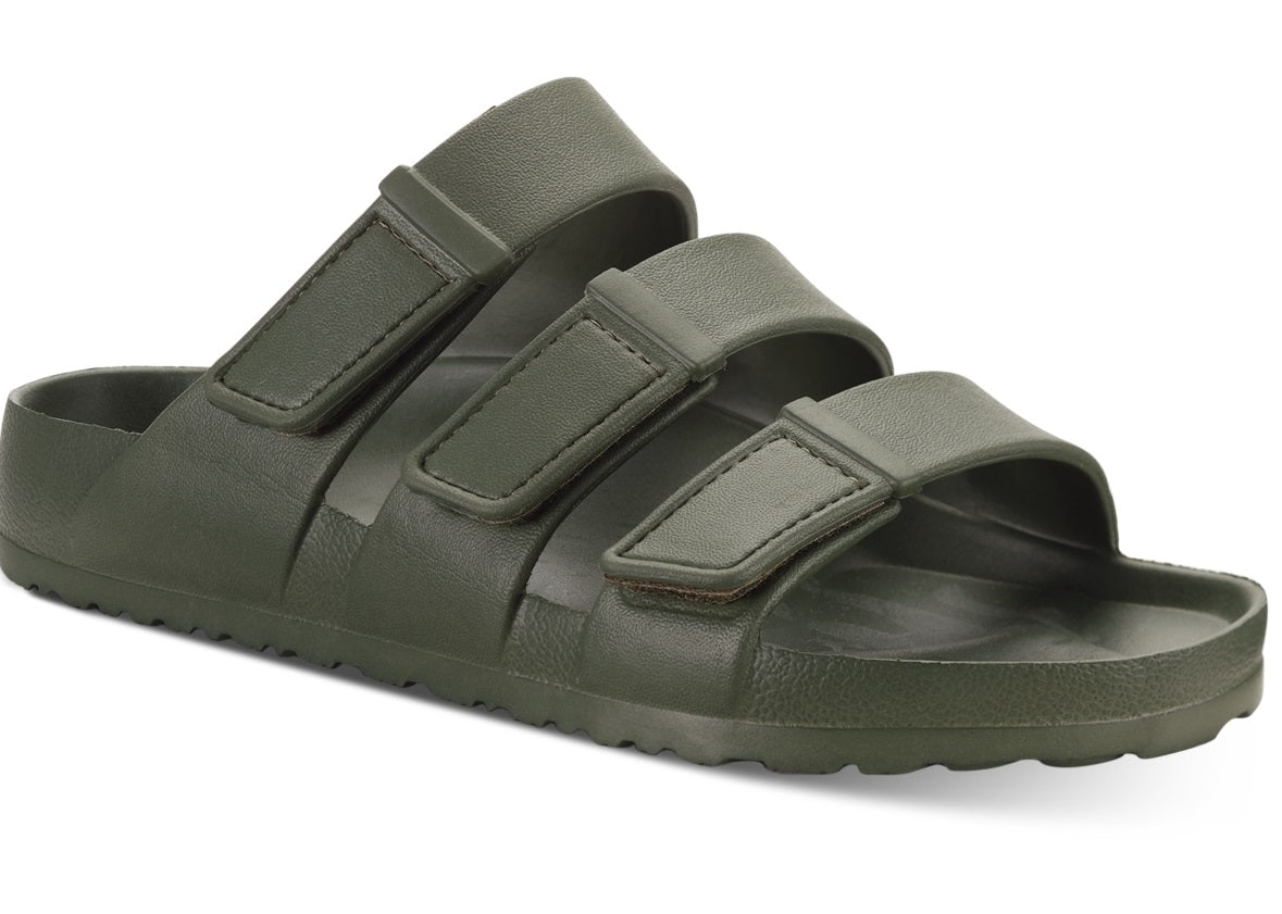 A trio of straps ensure a secure fit on these open and airy sandals by Sun + Stone.| Open-toe strap sandal| Stay-put straps| Flexible outsole| Polyurethane upper; polyurethane lining; polyurethane outsole| Wipe clean| Imported