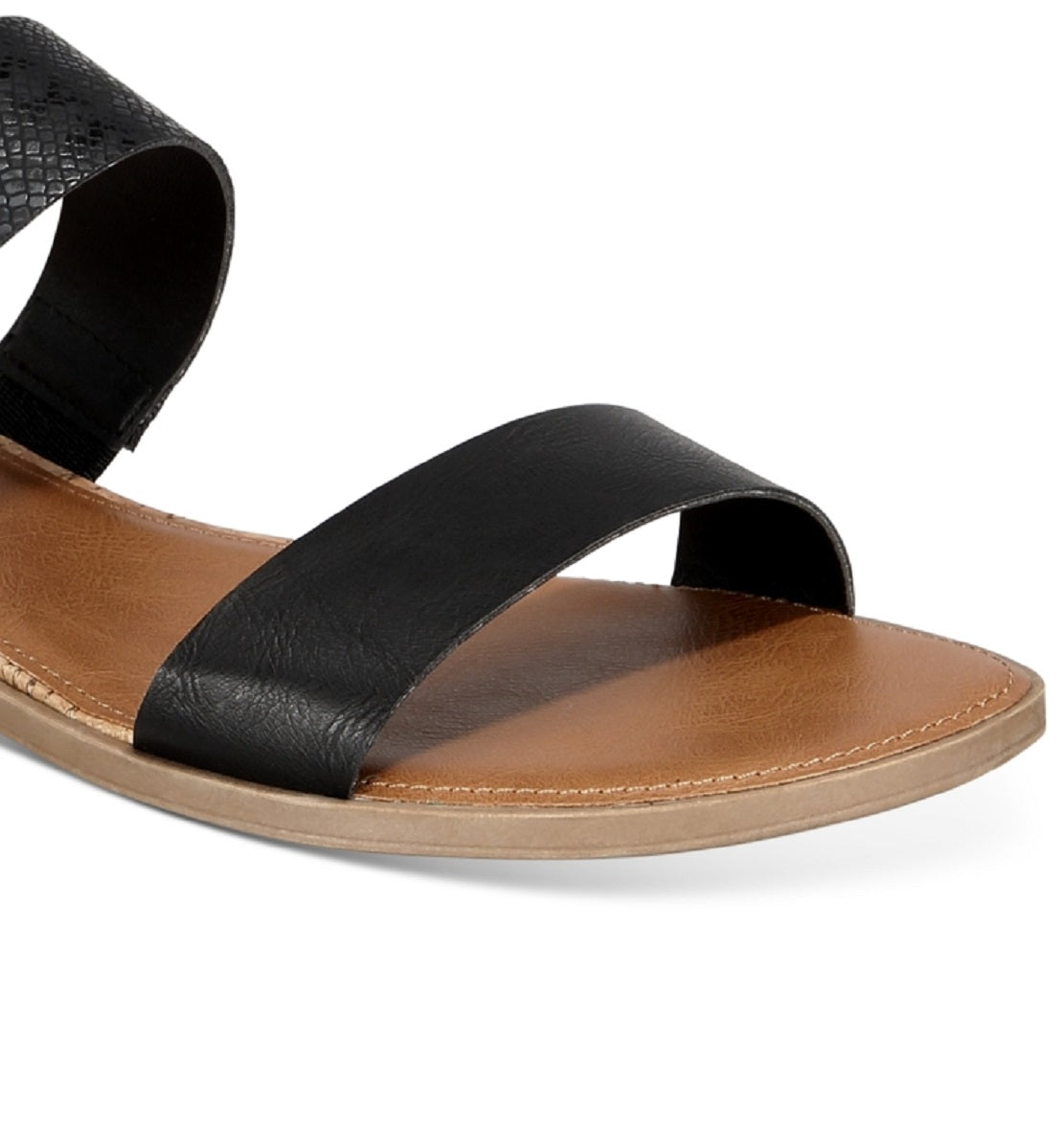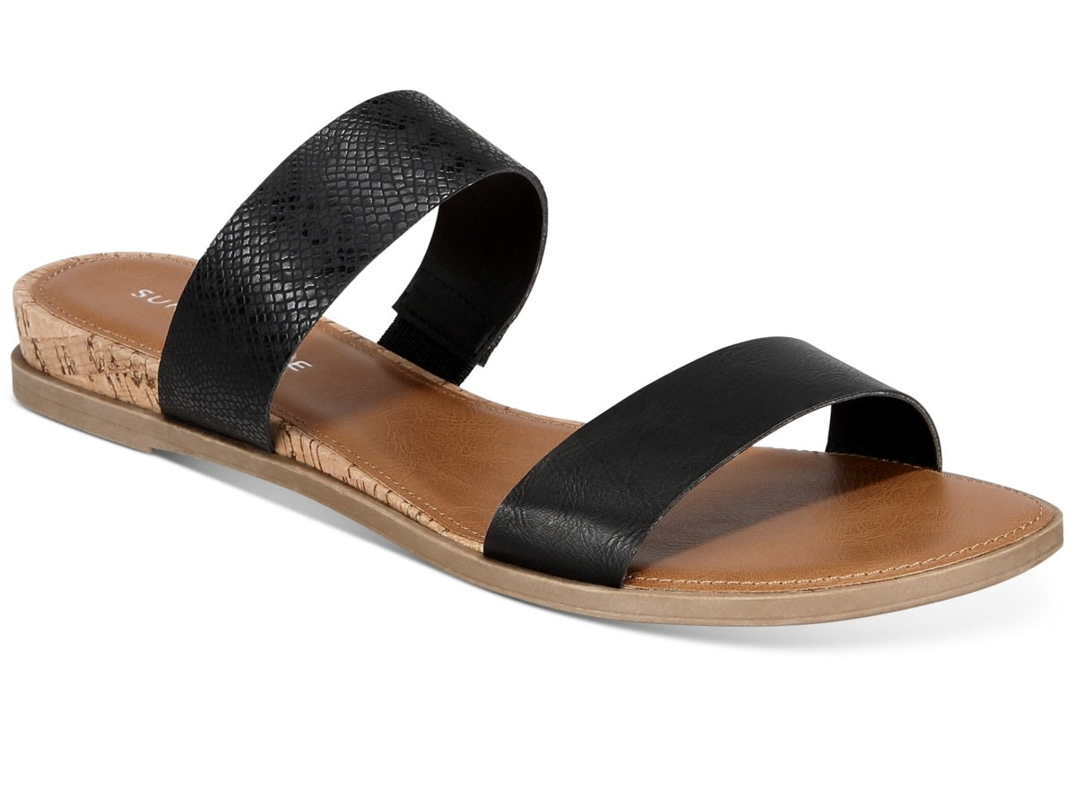 1 heel|Round-toe slip-on slide wedge sandals|Cushioned insole for added comfort; slip-resistant sole for added traction|Manmade or fiber fabric uppers; manmade lining; rubber sole|Imported