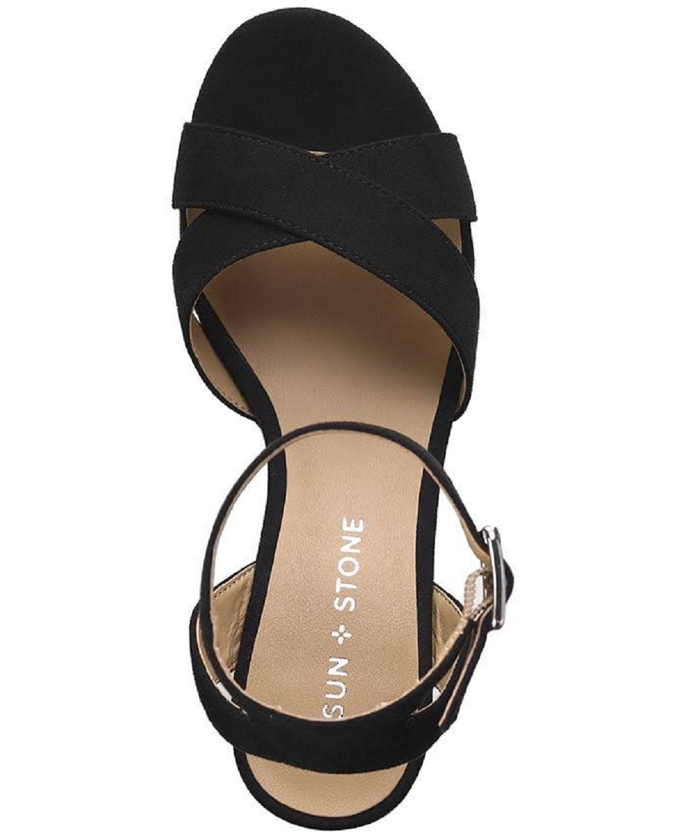 3-1/2 block heel; 1-1/2 platform|Round-toe ankle-strap platform sandals with adjustable buckle closure|fiber fabric upper; manmade lining; rubber sole|Imported
