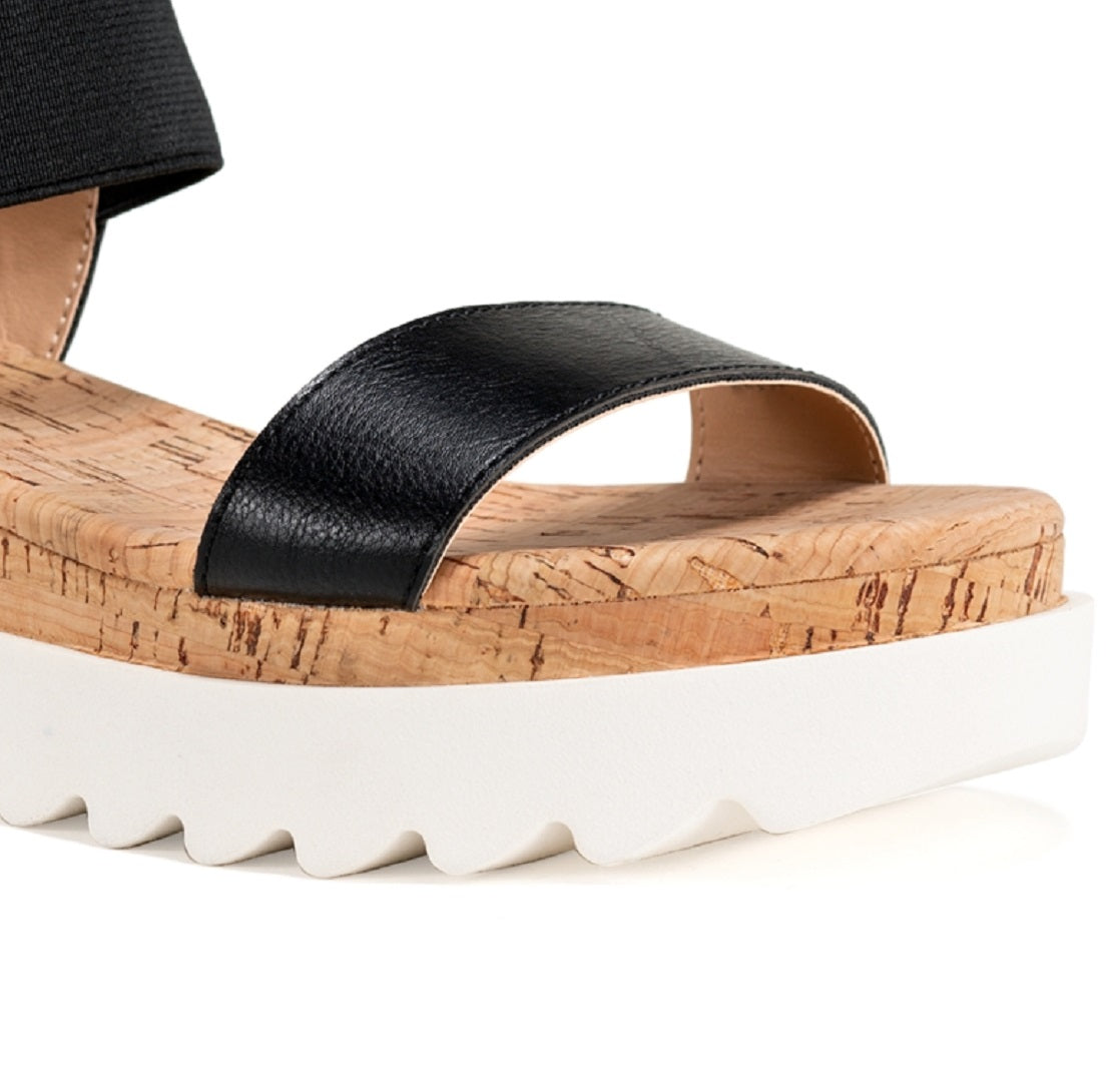2 wedge heel; 3/4 platform|Round-toe ankle-strap platform wedge sandals|Stretch straps for enhanced fit|Slip-resistant sole for added traction|Manmade upper; manmade lining; rubber sole|Imported