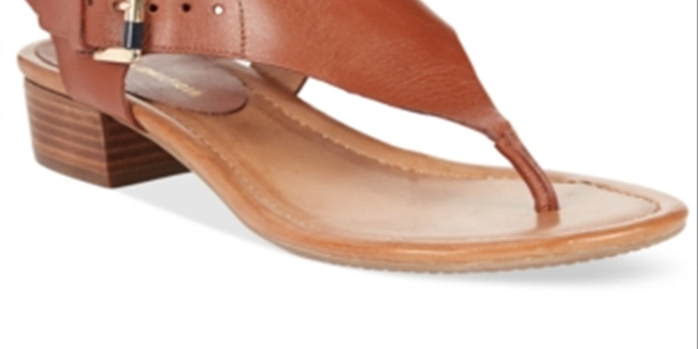 A block heel gives this style a foot-friendly appeal. The Kitty thong sandals by Tommy Hilfiger.| 1-1/4 stacked heel| Round open-toe thong sandals with buckle closure| Manmade upper; manmade sole| Imported