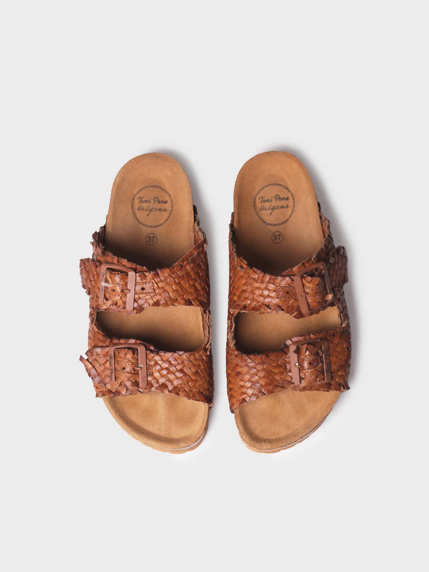 Classicly cute and all-day-wearable. We love this sandal. Meet the Women's Guam Sandal by Toni Pons, the perfect choice for your summer escapades. Crafted from braided leather with a cork and EVA rubber sole, these tan sandals offer a chic and comfortable fit. Featuring adjustable buckles and split leather lining, they provide an ideal balance of style and practicality. Designed with an open toe and flat heel, these boho chic sandals are true to size, but it's advised to order up if you're between sizes.