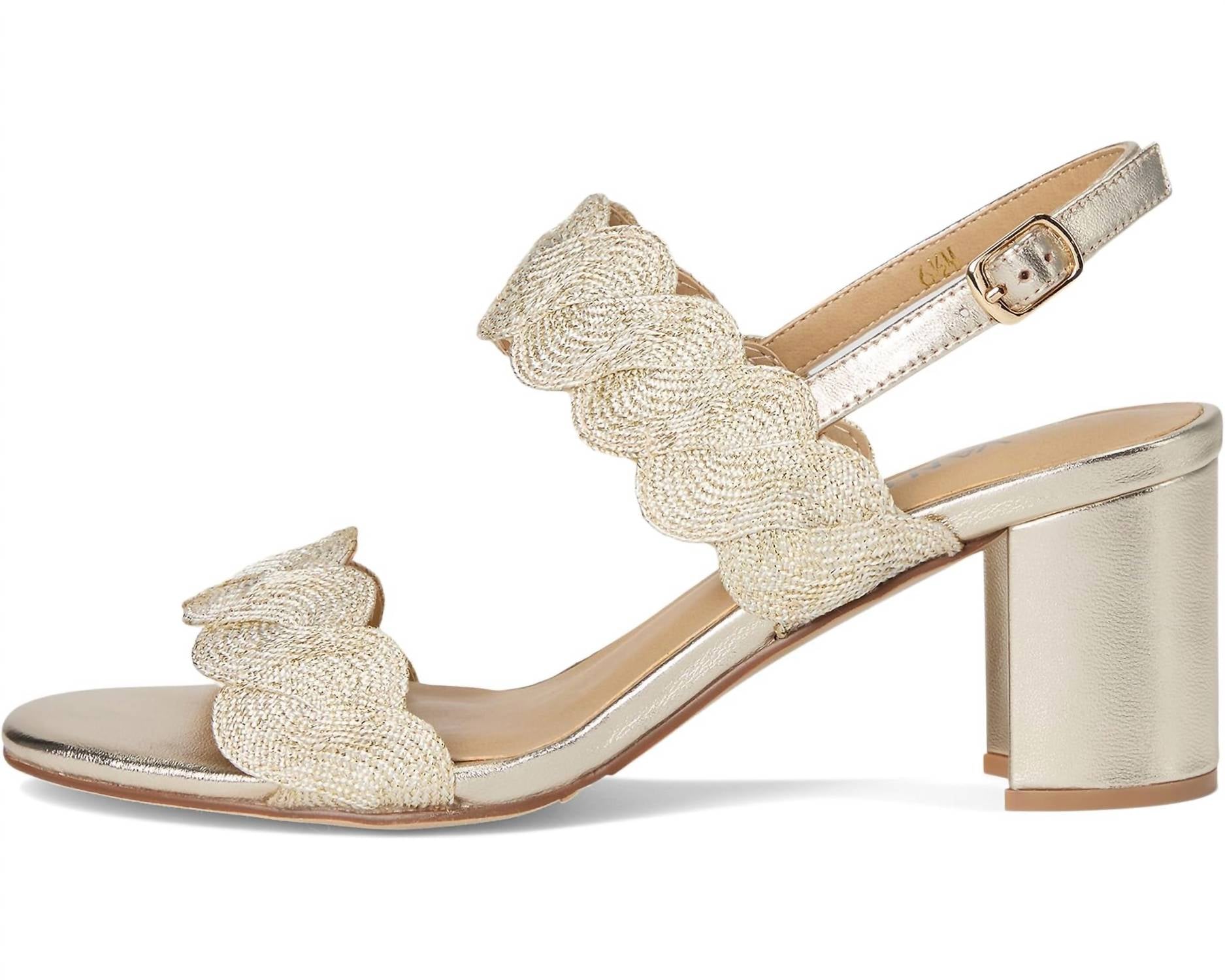 The perfect height for day to night. Step into spring with the Women's Lettie Woven Sandals by VANELi, featuring a chic fabric upper. These sandals boast an elegant open toe design, complemented by a slingback heel strap with an adjustable buckle and hidden elastic insert. The mid block heel, measuring 2 to 3 inches, provides an ideal balance of style and comfort, thanks to the cushioned insole and suede lining. Completed with a flexible rubber outsole, these sandals are perfect for the modern woman seeking sophistication and support.