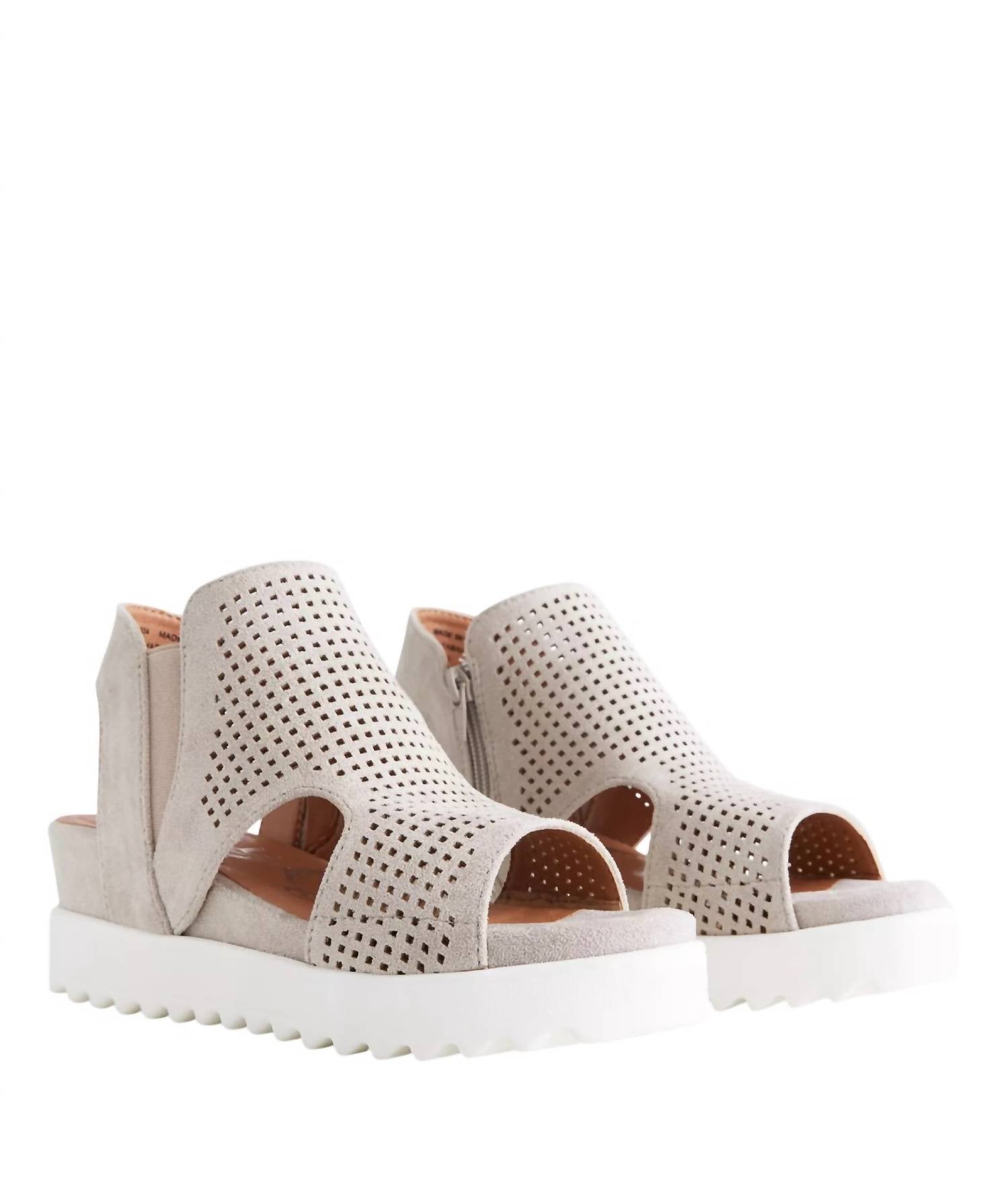 Classicly cute and all-day-wearable. We love this sandal. Introducing the Women's Amy 2 Sandal by Very G in a light grey hue, designed for those who desire style and comfort. These sandals are crafted from vegan leather and feature a cushion footbed for added comfort, perfect for all-day wear. With an open toe and a wedge heel measuring 2.75 inches, they add both height and sophistication. Side zipper. Country of origin: China. Fitting true to size.