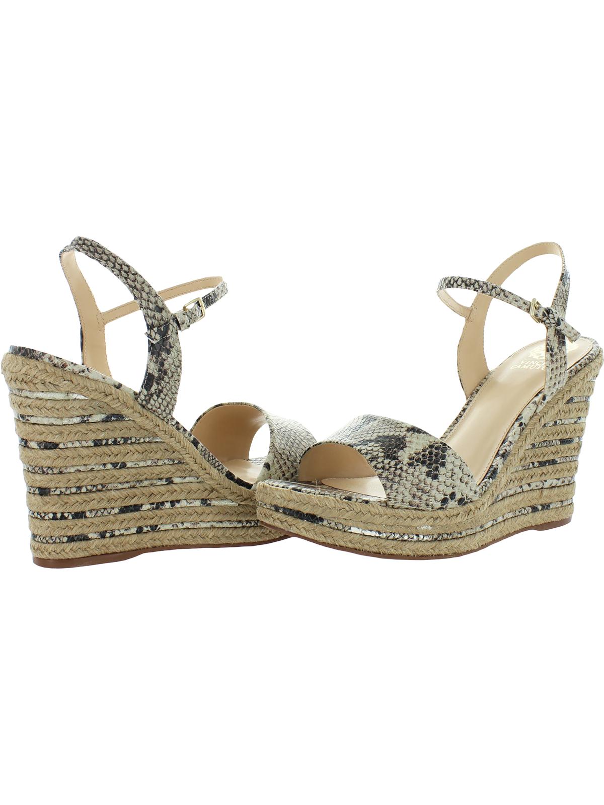 Vince Camuto Women's Marybell Leather Ankle Strap Wedge Sandals Black- White Size 10