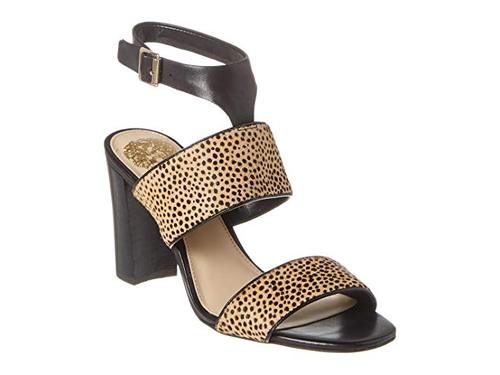 Round-toe ankle-strap dress sandals with adjustable buckle closure | x, dyed genuine calf hair | Imported