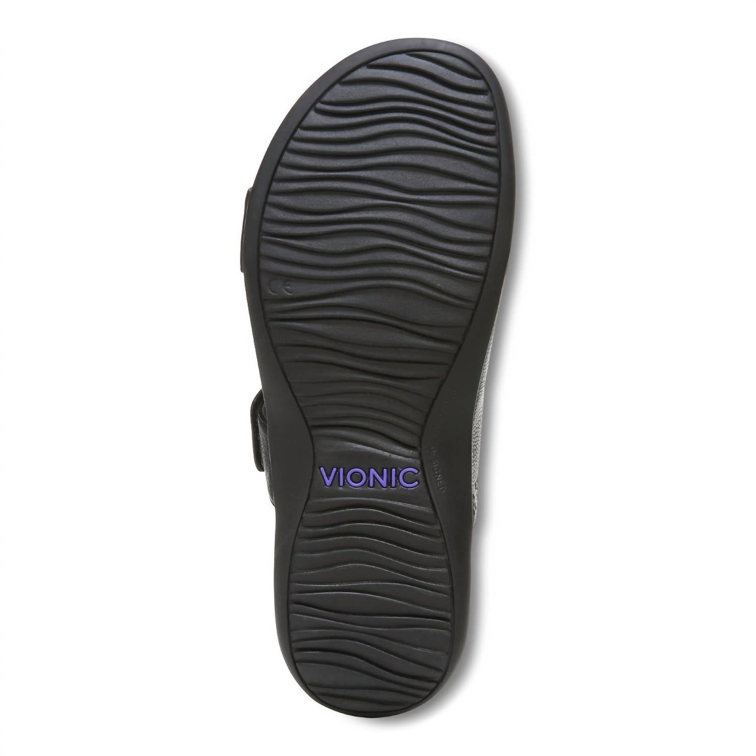 This sandal will take you from brunch to dinner and everything in between. The Vionic Nakia Women's Adjustable Slide Orthotic Sandals. These sandals feature two adjustable straps made from leather metallic and synthetic materials for a tailored fit. The podiatrist-designed footbed offers THREE-ZONE COMFORT, addressing plantar fasciitis and other foot concerns. Lightweight and flexible, the EVA midsole and durable rubber outsole reduce stress on your feet, ankles, and knees while providing excellent traction.