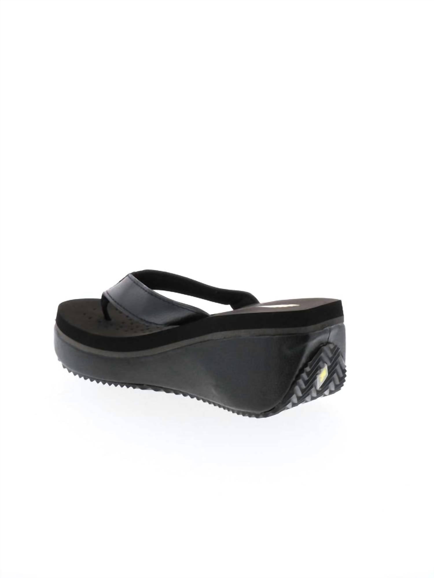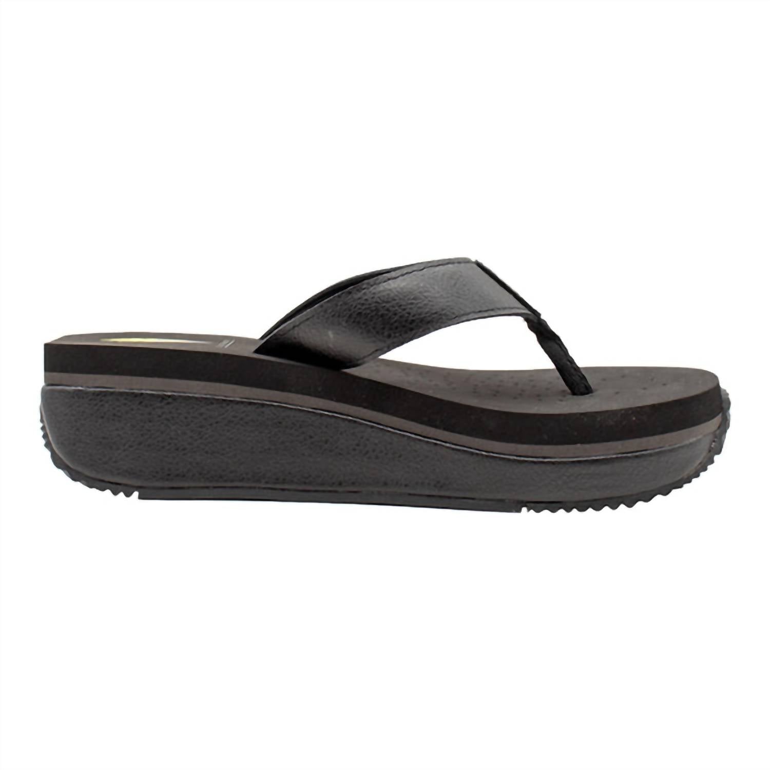 Experience summer in style with the Women's Frappachino Wedge Sandals by VOLATILE, featuring a 2.25” wedge heel for the perfect mid-rise lift. These sandals come in a boho chic design with an upper available in genuine leather, faux glossy croco, or faux metallic snake, complete with a soft webbed textile thong post and padded textile lining for ultimate comfort. They boast a slip-on thong wedge style with a round toe shape, EVA insole for ultra-comfort, and a rubber traction outsole for stability. Ideal for vacation wear this Easter, they capture the essence of leisure and style.