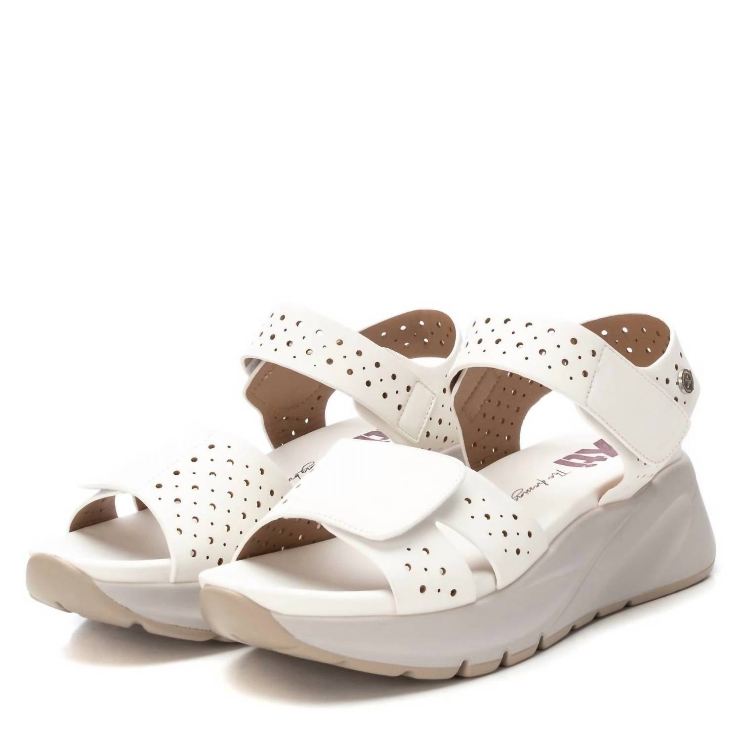 This sandal will take you from brunch to dinner and everything in between. Elevate your ensemble with the Women's Casual Sandals by Xti, designed for any occasion. Crafted from faux leather with a metallic effect, these sandals feature a supportive ankle strap with a convenient hook-and-loop closure. The low wedge heel and sporty non-slip sole are enhanced with metallic details for added style. Proudly certified vegan by PETA, these sandals combine fashion and ethics seamlessly.