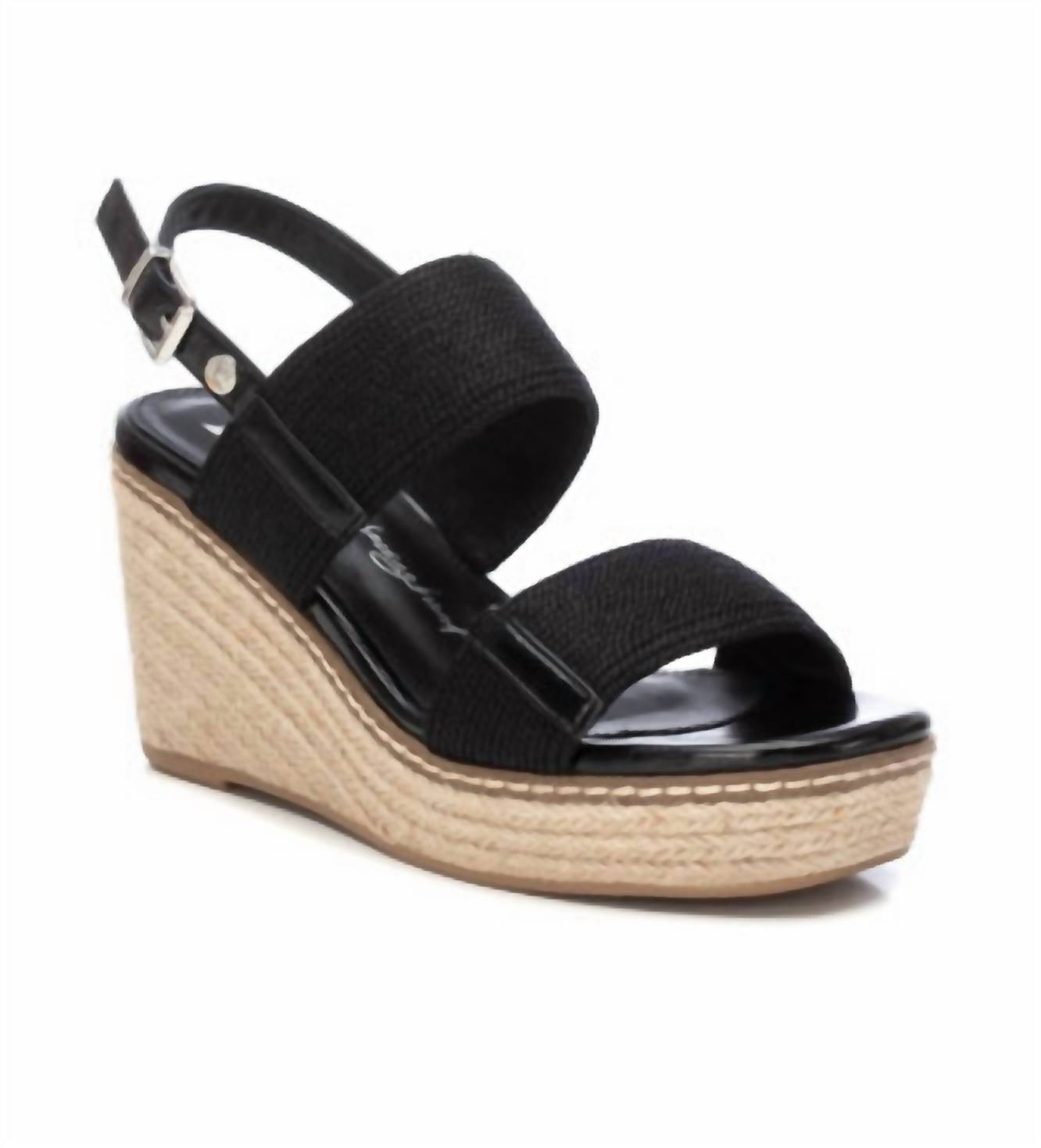 Classicly cute and all-day-wearable. We love this sandal.This Wedge Sandal features a braided textile material with a metallic finish and a metal buckle fastening. The 9 cm wedge heel with a front jute platform provides height and stability. Includes a non-slip rubber sole and is PETA-certified vegan, perfect for stylish and conscious summer wear.
