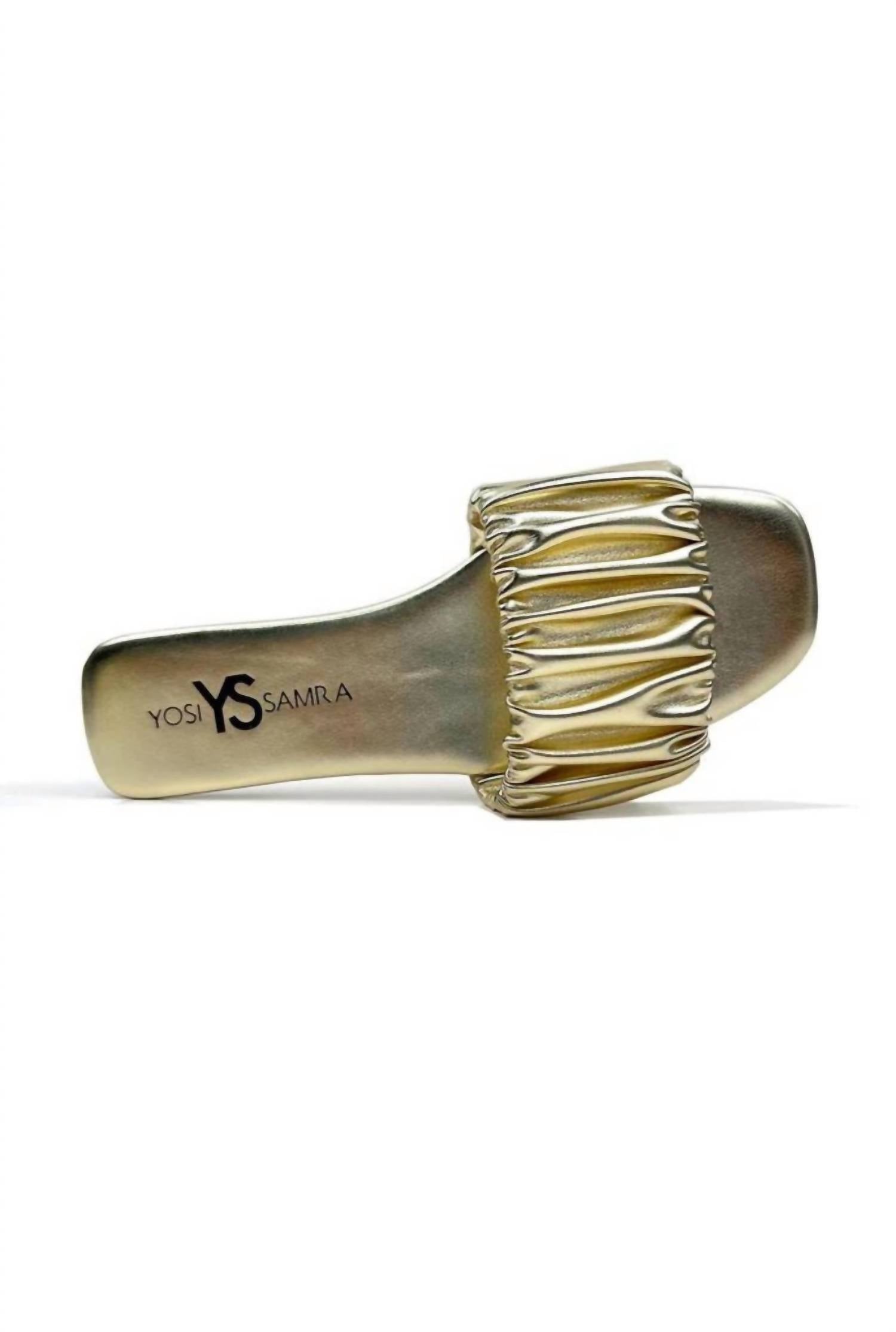Classicly cute and all-day-wearable. We love this sandal.Classic slide. Soft vegan leather, these chic sandals feature a trendy ruched strap and a square toe. Lightly cushioned footbed. Slip-resistant sole. Soft vegan leather upper, lining & sock. Flat block heel for all-day wearability. Imported.