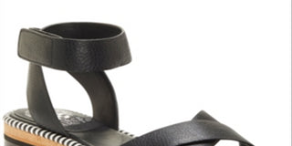 Vince Camuto Women's Marybell Leather Ankle Strap Wedge Sandals Black- White Size 10
