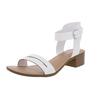 Sun Stone Women's Adjustable Strap Cushioned Alecta Round Toe Block Heel Buckle Sandals White Size 6.5 M