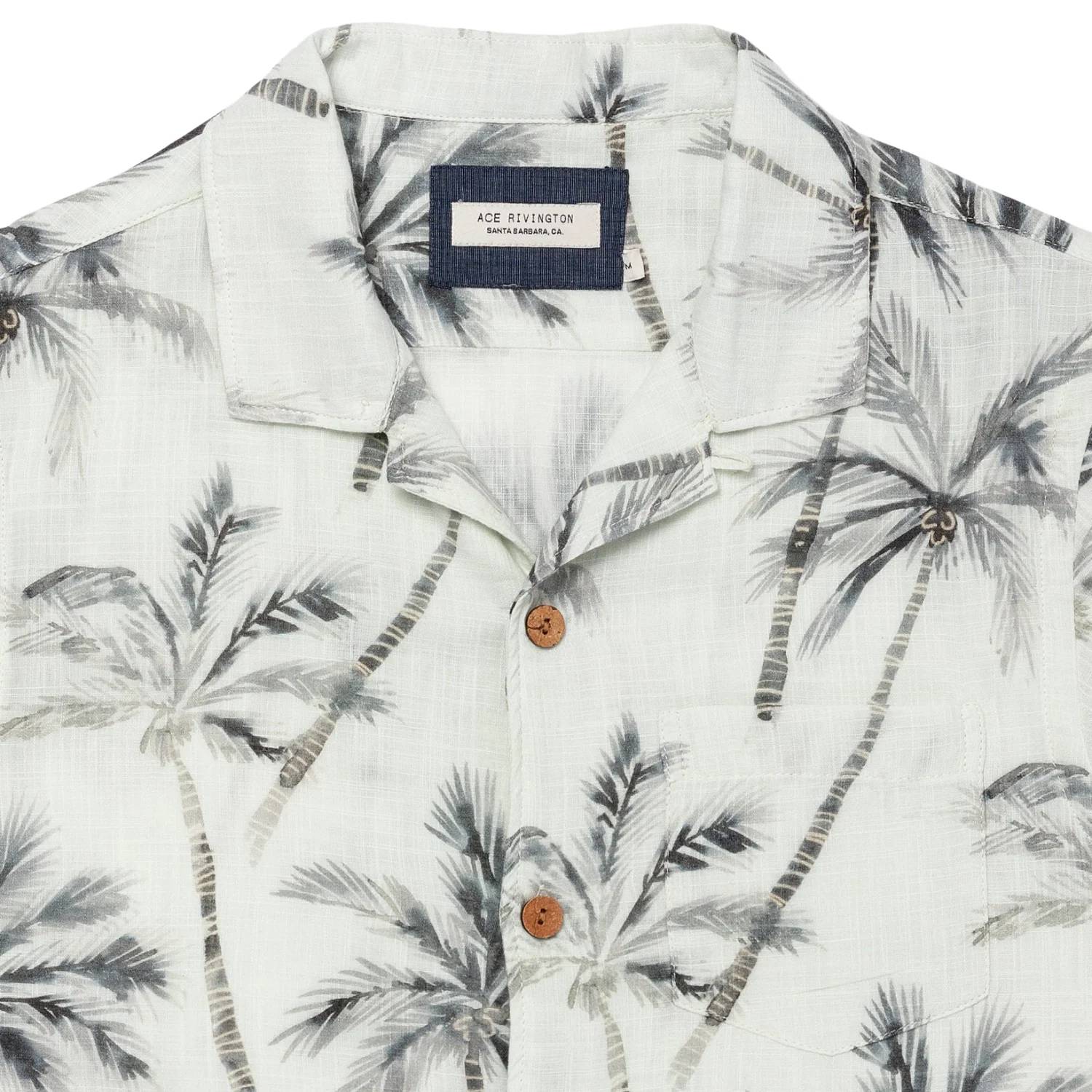 The Ace Rivington Double Gauze Camp Shirt in Water Palm offers a blend of unique artistry and comfort, tailored for the fashion-forward gentleman. With short sleeves and crafted from 100% cotton, this shirt features a camp notched collar and showcases hand-painted artwork by a UK artist. Closure: Button closure with natural coconut buttons. Care: Machine wash and lay flat to dry. The lightweight, breathable fabric is pre-washed to minimize shrinkage, while the straight cut hem and side seam vents provide a relaxed Hawaiian vibe.