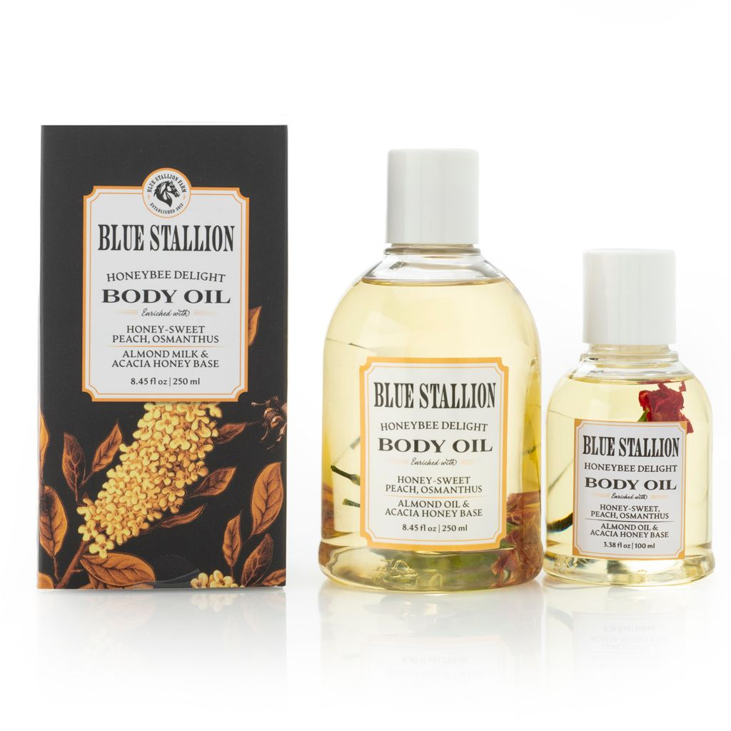 Experience the soothing touch of nature with our Blue Stallion Body Oil, perfect for those who appreciate luxury and care in their skincare routine. This exquisite product is available in your choice of scent, tailored to enhance your personal essence.