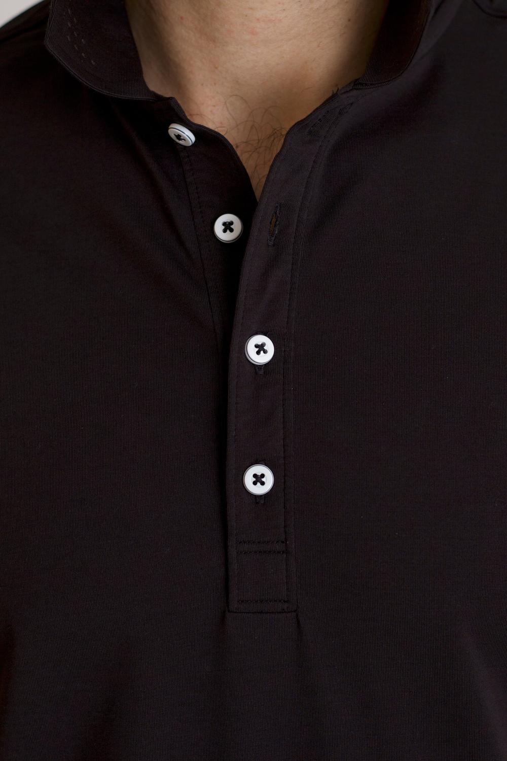 Elevate your wardrobe with the Coolest Polo Tech Shirt by Buki, an ideal choice for golf, travel, or date night. This short sleeve solid color polo features a classic four-button placket paired with a self-collar and laser-cut ventilation holes for enhanced breathability. Crafted from a sustainable cotton blend, it comprises 64% Supima Cotton and 36% Micro Polyester, offering wrinkle-resistance, four-way stretch, and advanced moisture management for superior comfort. Closure: Button closure. Care instructions: Machine wash.