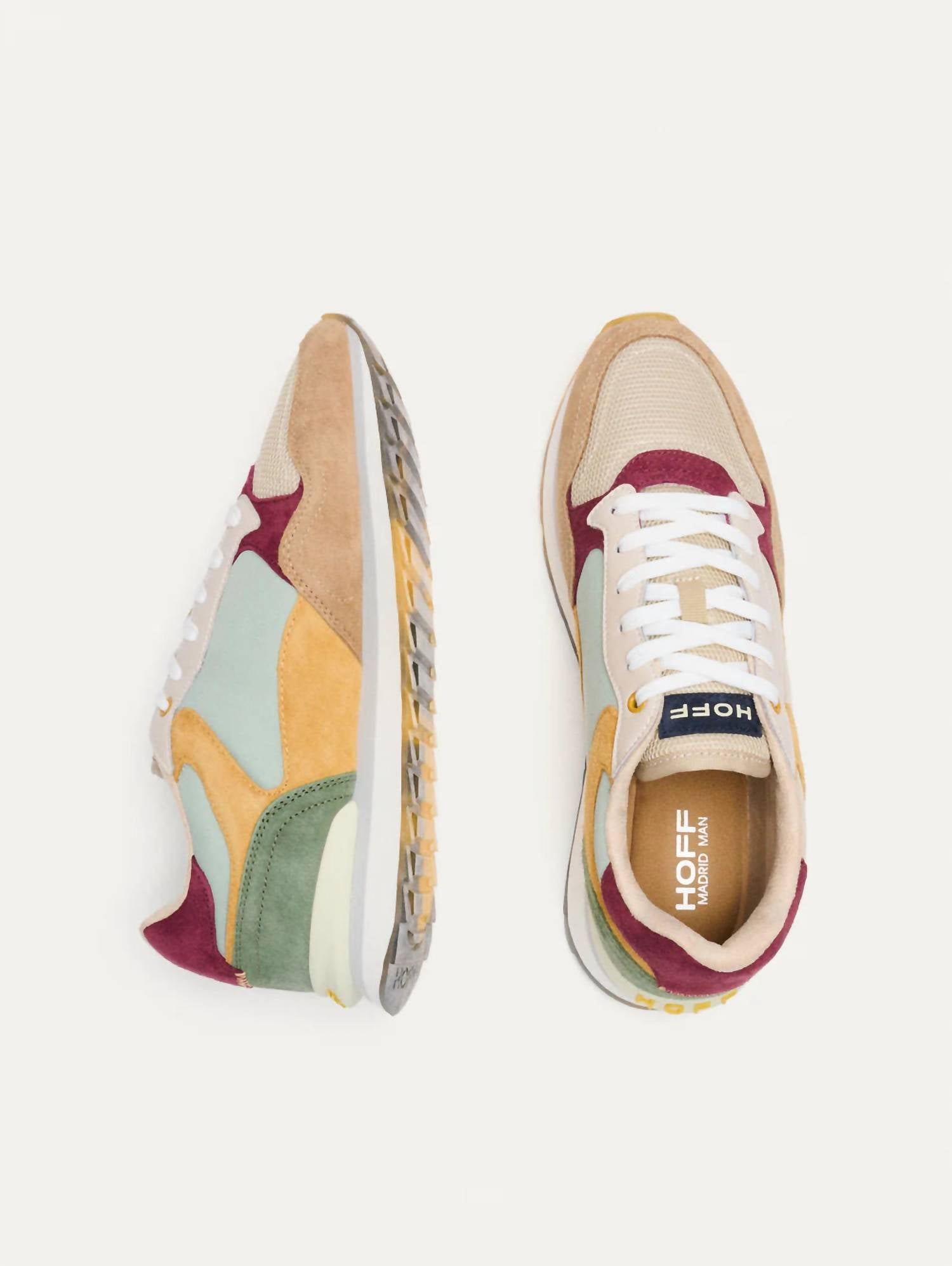 Introducing the Hoff Men's City Man Trainer Shoes, a dynamic choice for the athleisure trend. These sneakers boast side pieces made of suede leather and textile, accompanied by a secure lacing system for added support. A round toe shape and flat heel style enhance comfort for fitness and workout occasions. Features include a memory foam removable insole, a 3 cm high EVA midsole, and an eye-catching serrated sole with a printed image inside transparent rubber.