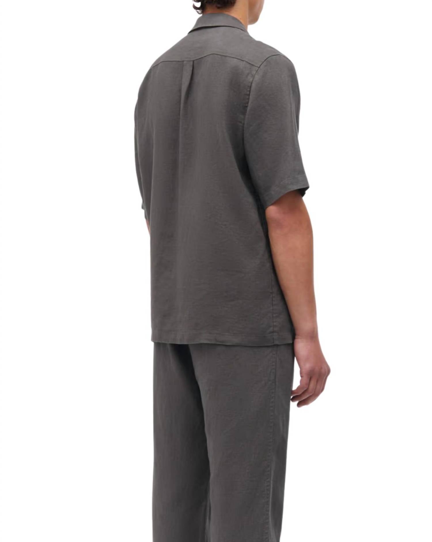Introducing the Oscar Shirt by Samsøe Samsøe, a blend of casual style and Danish sophistication. This short-sleeved shirt in the solid Beluga color is crafted from 100% linen, ensuring it is both light and breathable for warm days. It features a chest pocket and a yoke at the back with pleated details, offering a relaxed boxy fit. With a length of 77cm in size L, this button-closure shirt is easy to care for with machine wash instructions. Perfect for spring and Thanksgiving occasions, the model is 188cm tall and wears a size L.