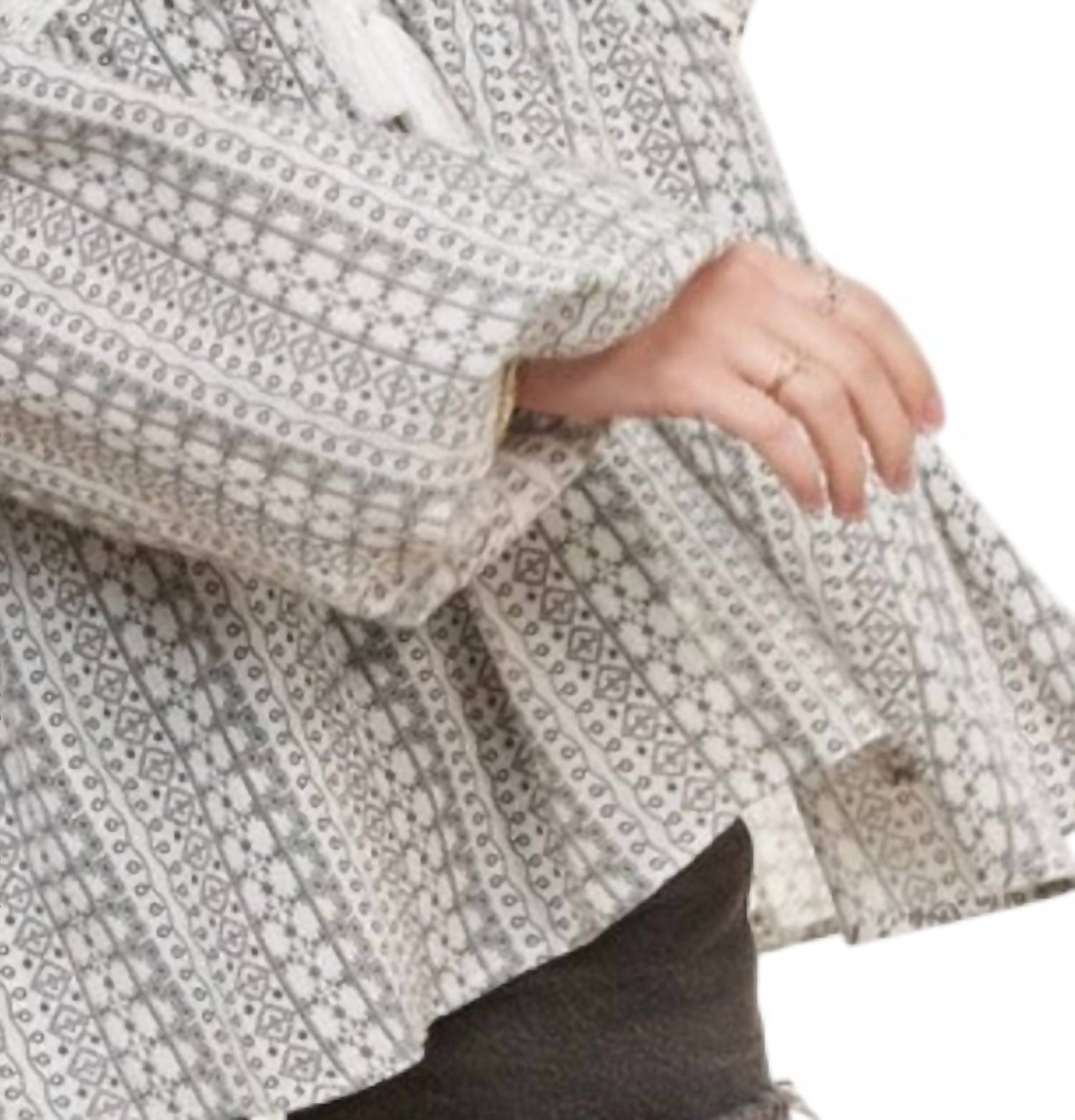 Introducing the Bohemian Nights Floral Tunic by ADORA, a perfect blend of boho chic and contemporary elegance. This tunic showcases long sleeves and a striking gray floral pattern, complemented by a V-neckline. Its material comprises 65% Rayon and 35% Polyester, providing a relaxed and flowy fit. Designed with a convenient tie closure, it's an ideal choice for vacation getaways or a casual Thanksgiving gathering. Available in sizes SM (Bust 31-33 in, Waist 25.5-27.5 in), M (Bust 36-38 in, Waist 28-30 in), and L (Bust 38-40 in, Waist 30-32 in).