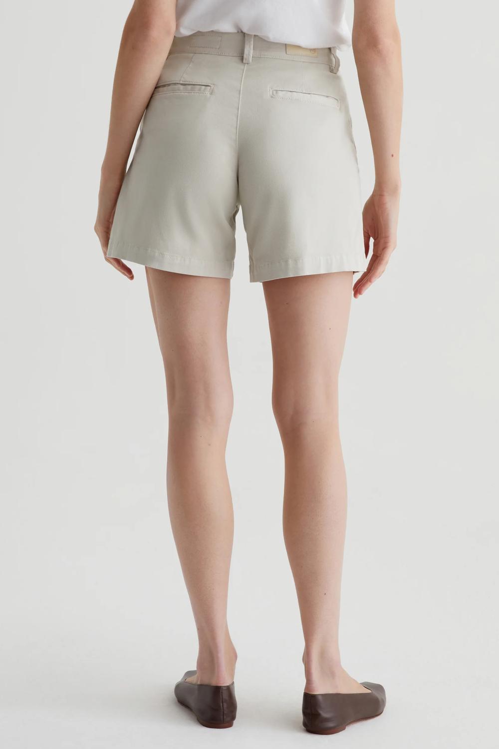 Fit to perfection, we love these high-waist shorts and you will too. Elevate your warm-weather wardrobe with the Jude Shorts by AG Jeans, designed for women seeking comfort and style. These high-waist, off-white chino shorts feature a relaxed fit through the hips and a wider leg opening, perfect for spring outings. Crafted from a Cotton Blend (54% Cotton, 43% Lyocell, 3% Elastane), they are equipped with a convenient button closure. Measurements include a 10 1/4" front rise, 24" bottom opening, and a 5" inseam. Machine wash.