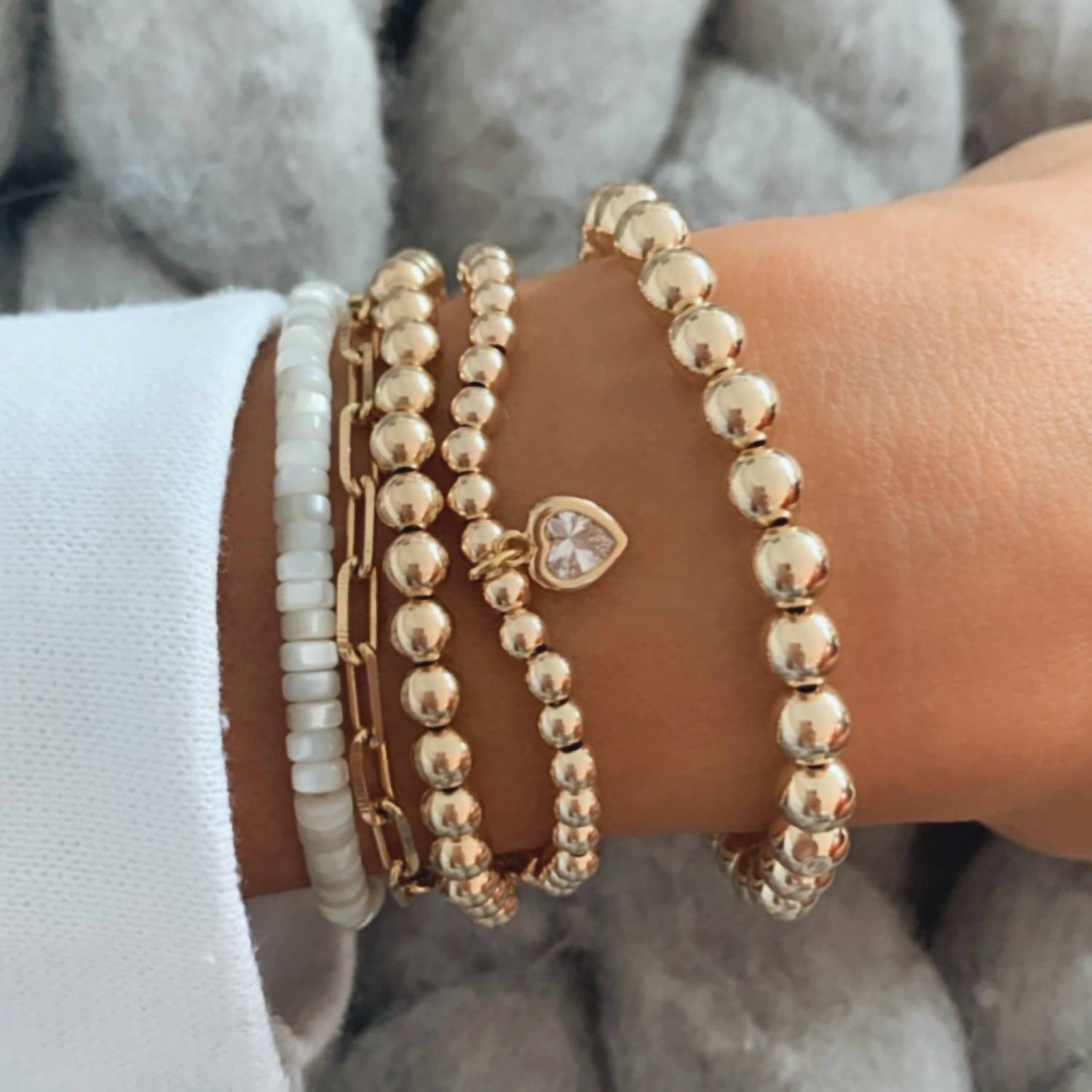 The Women's All My Heart Bracelet by Alexa Leigh offers a chic and timeless look in yellow gold. Crafted with 3mm 14K gold-filled beads, this piece provides a luxurious feel while the elastic stretch ensures it fits most wrists comfortably. This elegant bracelet measures 6.5 inches, making it a perfect accessory for any occasion. Made from high-quality gold plating, it adds a touch of glamour to your jewelry collection.