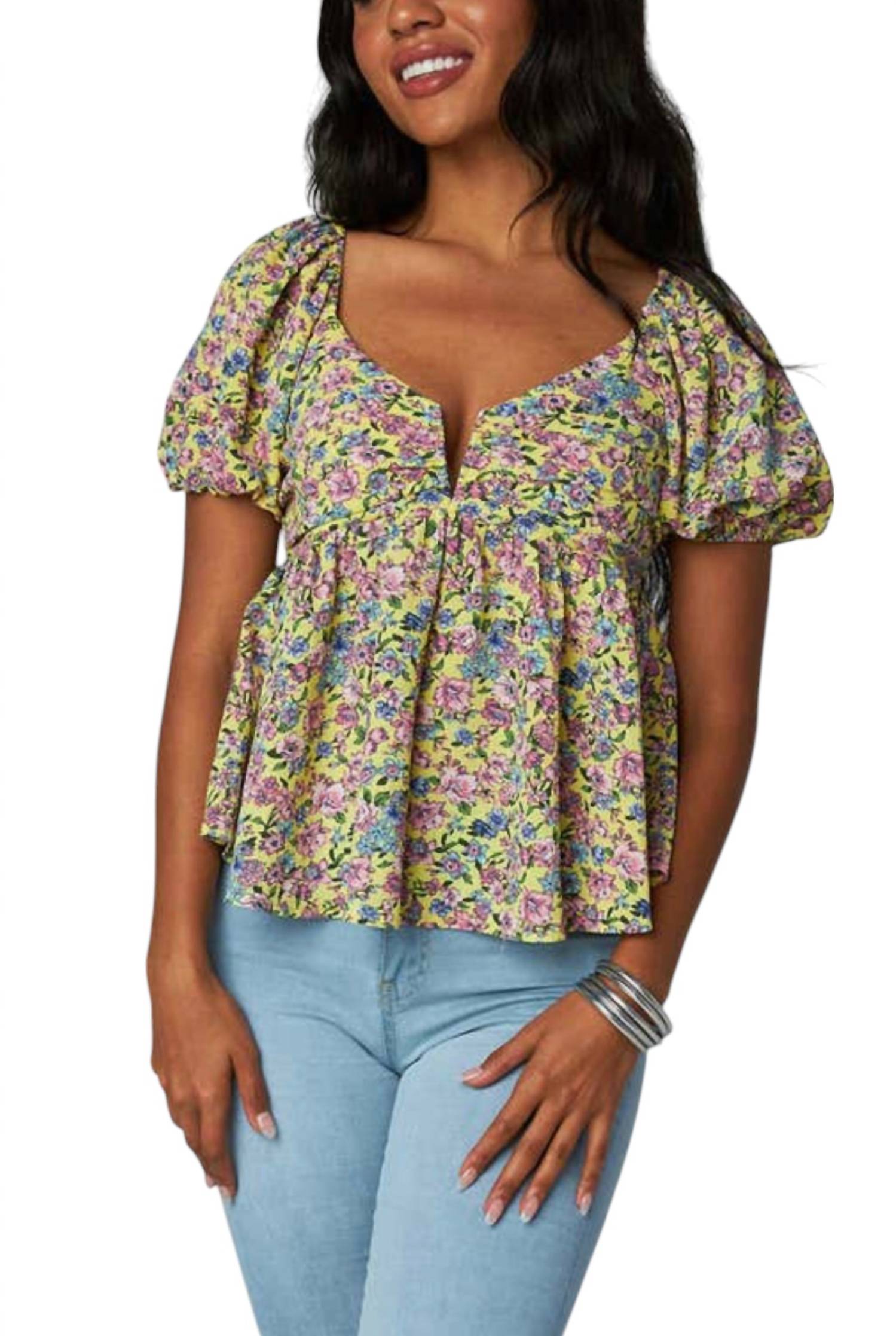 Pair this with your favorite jeans and slides for your next girls night out. Meet the Houston Top by BUDDYLOVE in a lively black floral print—ideal for a carefree day out. This blouse features short puff sleeves and a deep V-neckline, crafted from 100% Polyester with a soft 100% Rayon lining. Falling at the natural waist, it measures 14.75" from shoulder to hem, offering a relaxed, true-to-size fit with easy pull-on styling. Effortlessly chic, this top brings a fresh and vibrant touch to your summer look.