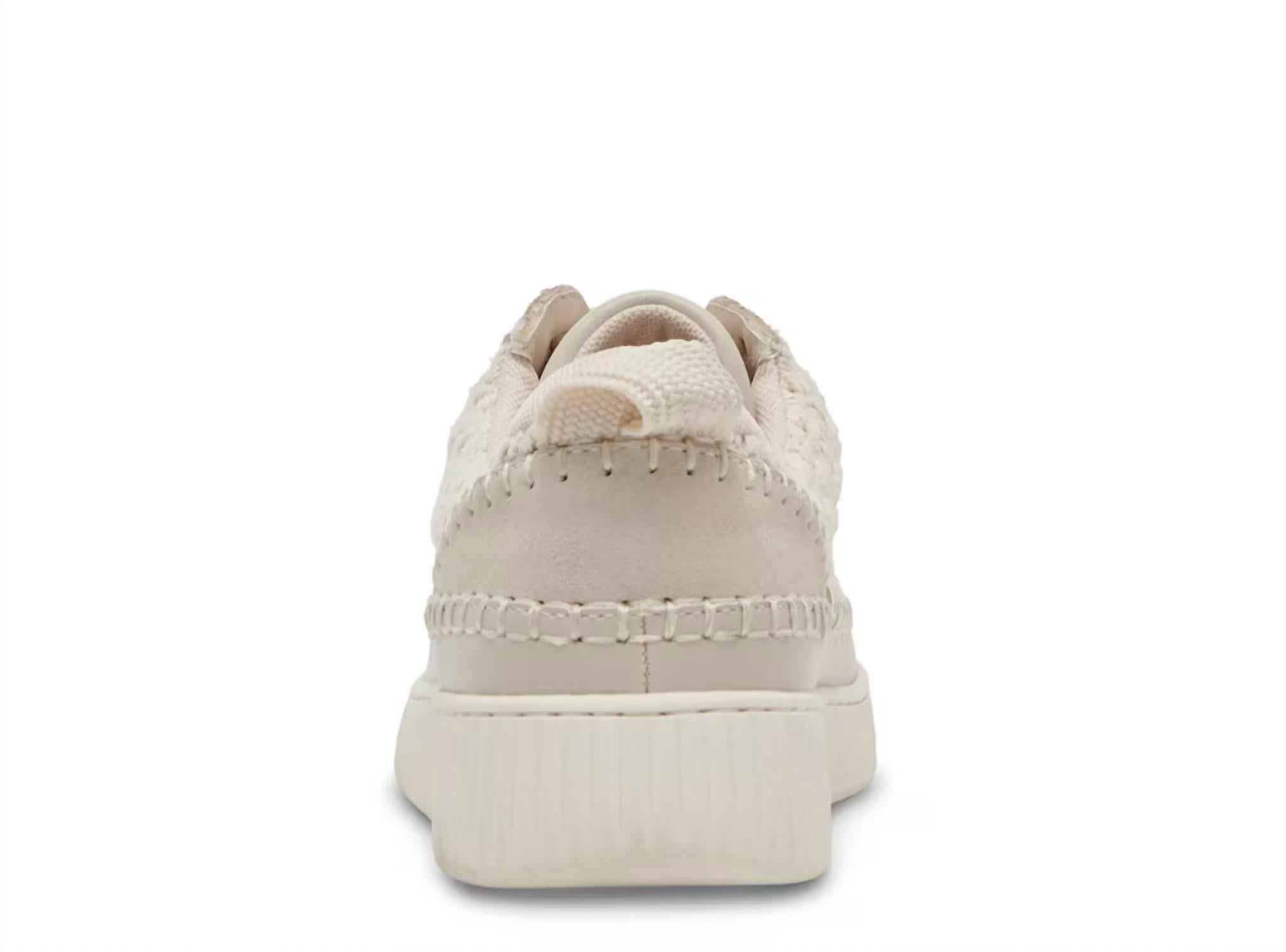 Cute, functional, and comfortable. These sneakers check all the boxes. Step into the new season with the Women's Nicona Embroidered Sneakers by Dolce Vita. These sneakers showcase a sophisticated combination of leather and woven textile uppers in a chic sandstone hue. Featuring a lace-up closure, they are designed with a round moc toe and padded collar for added comfort. The textile lining and padded footbed rest on a durable rubber sole, ensuring these minimalist kicks are as comfortable as they are stylish.