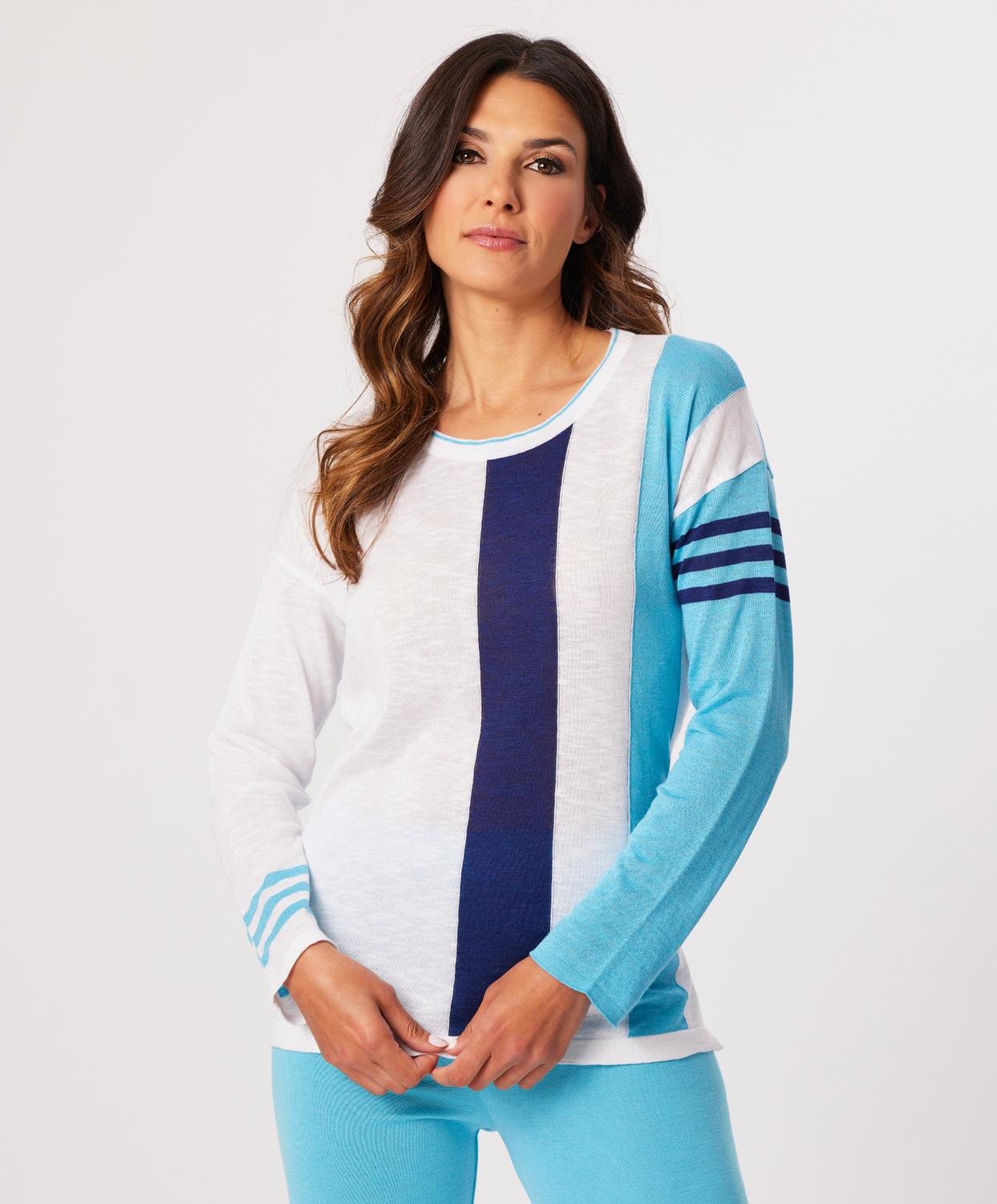The perfect long sleeve tee that goes with just about anything. Embrace effortless style with the French Kyss Color Block Scoop Neck Top, perfect for your next dinner party. This long sleeve tee features a chic color block detail and is designed to hit at the hip for a flattering silhouette. Made from a cotton/acrylic blend, it offers a comfortable fit with a pull-on closure. Care for this imported top with a delicate hand wash or dry clean.