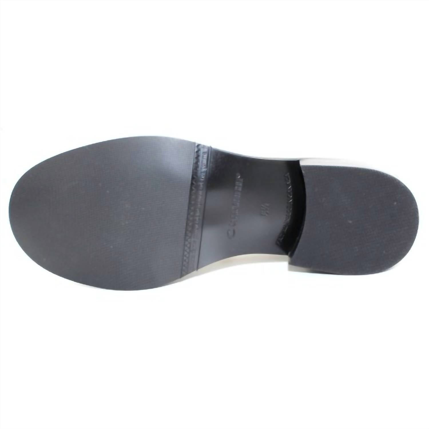 A classic loafer that is both comfortable and polished. Step into sophistication, exquisitely handcrafted in Canada. Featuring a sleek slip-on style. Boast a leather upper, lining, insole, and a classic moc toe with intricate handstitching. Design is completed with a leather sole enhanced by a rubber forepart and heel, and a 1.25-inch stacked block heel. Ideal for workwear and travel. Promise comfort and timeless elegance.