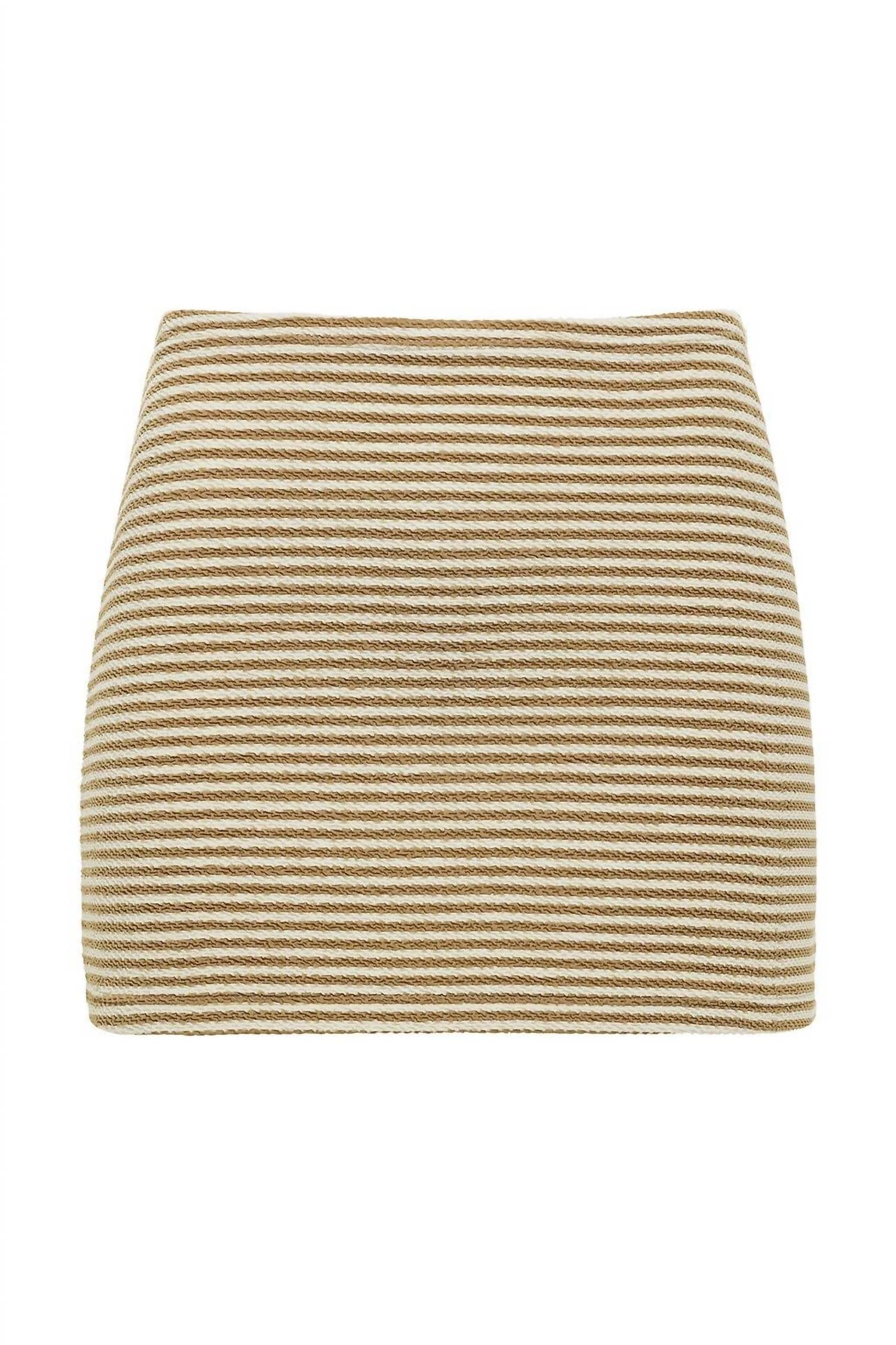 A comfy-all-day coverup that works just as good at dinner as it does by the pool. Experience the Montce Micro Cover Up Skirt in a chic neutral stripe, a stylish addition to your summer wardrobe. With a form-fitting and body-contouring silhouette, this versatile skirt can be worn high, low, or mid-rise to suit your style. Crafted from a 90% Nylon and 10% Spandex blend, it features a thick, textured fabric with light compression, imported from Spain. Care for this OEKO-TEX certified piece by hand washing and line drying it to maintain its quality. Available in lengths of 11" for XS/S, 11.5" for M/L, and 12.25" for XL/C1.