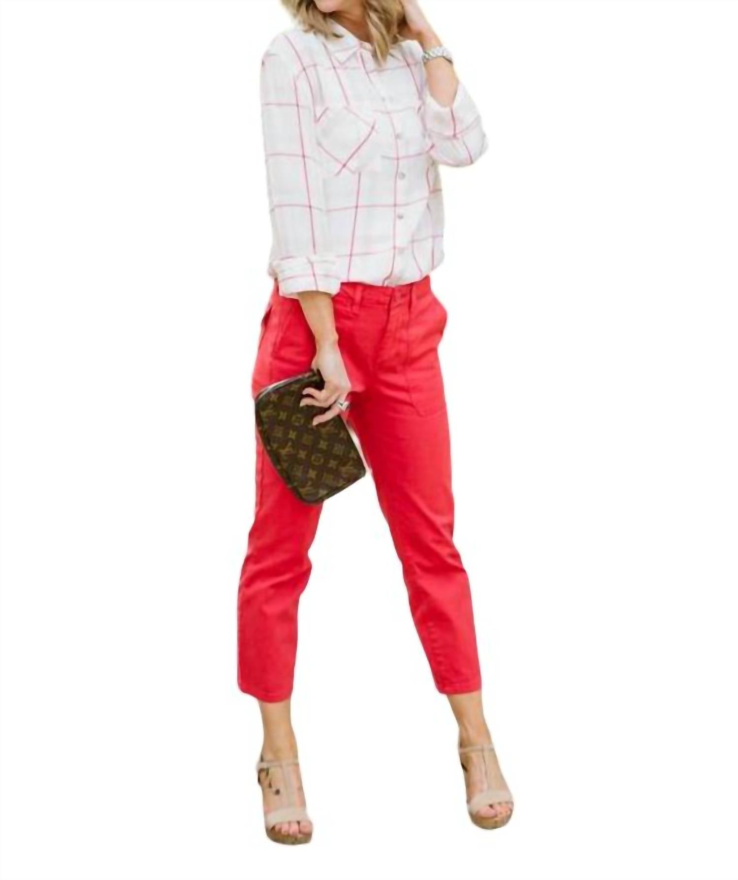 A classic button down shirt that will never go out of style. Printed Button Front. Boyfriend Shirt. Front Pockets. High Low Hem. Light weight material. Semi-sheer. Front Length 28". Back Length 28". Sleeve Length 32 1/2". Model is wearing size XS. Height: 5'4". Bust: 32". Waist: 26". Hips: 32". Wash on gentle cold cycle, non-chlorine bleach and low iron if needed.