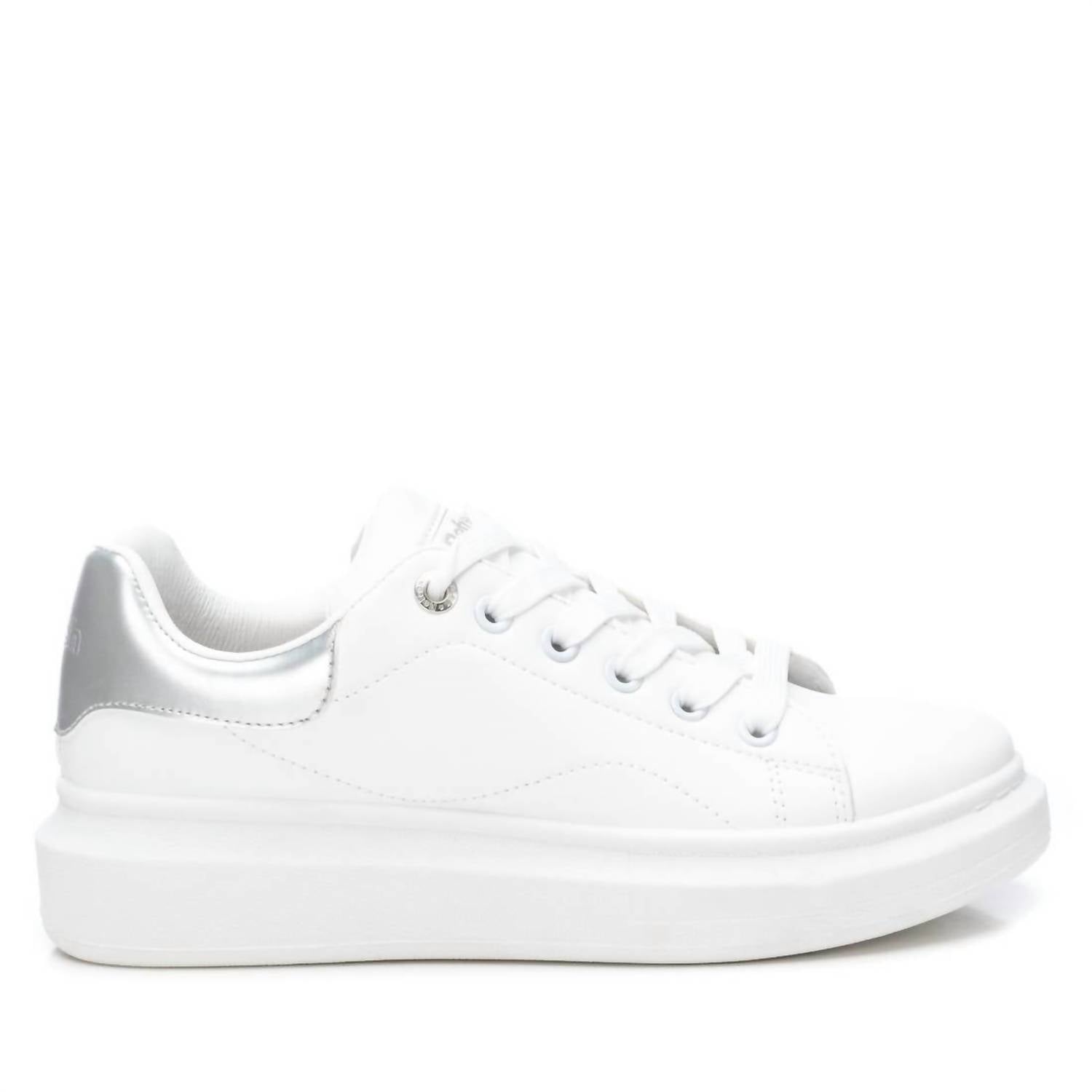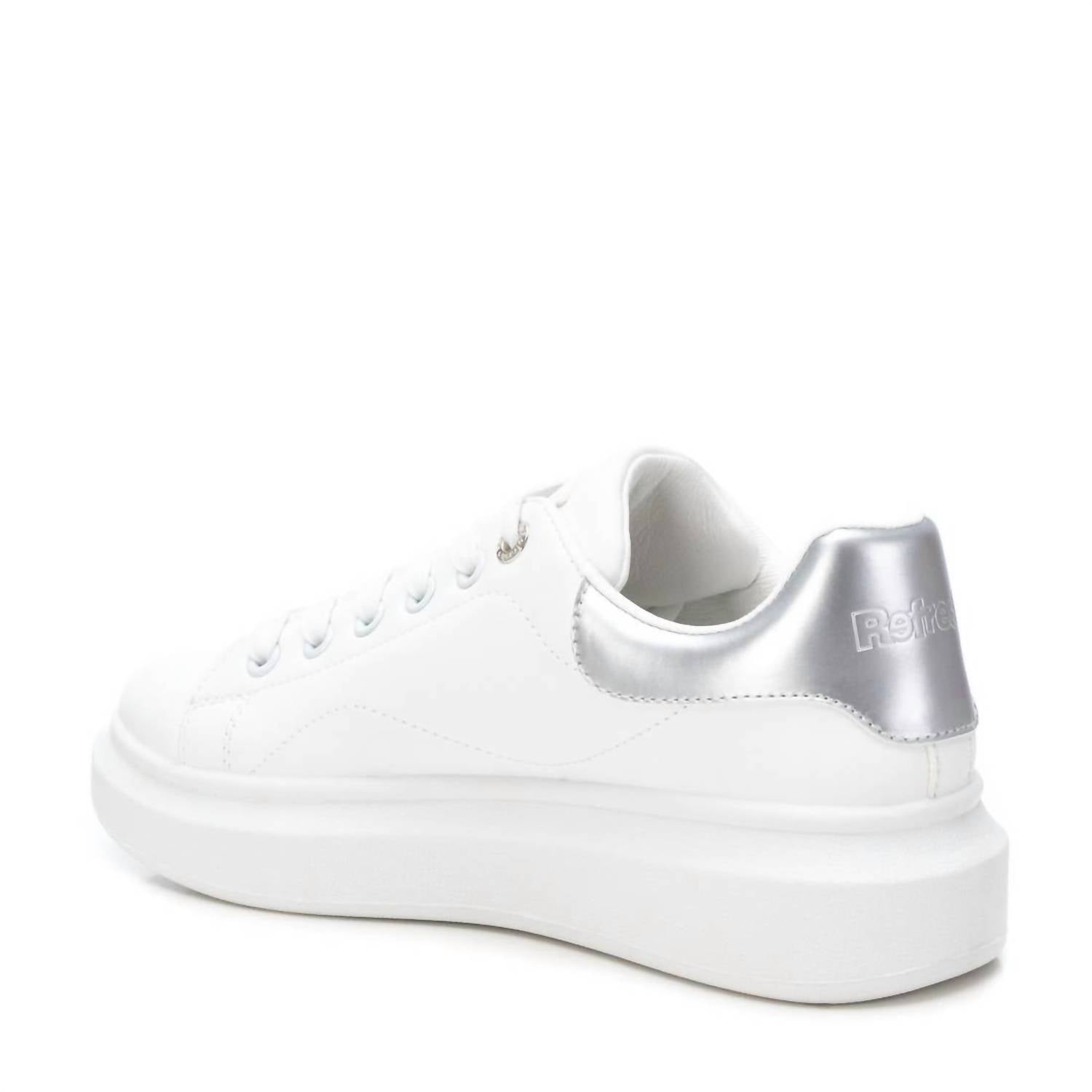 Get your daily steps in with these adorable sneakers. Elevate your casual style with Xti Women's Casual Sneakers, crafted in chic faux leather. These trainers from the Refresh brand feature adjustable lace closures and a sleek round toe design for a perfect fit. The sneakers boast a lightweight, anti-slip rubber outsole and removable Comfortech insoles, ensuring all-day comfort. Certified vegan by PETA, these stylish sneakers are a sophisticated addition to your everyday wardrobe.