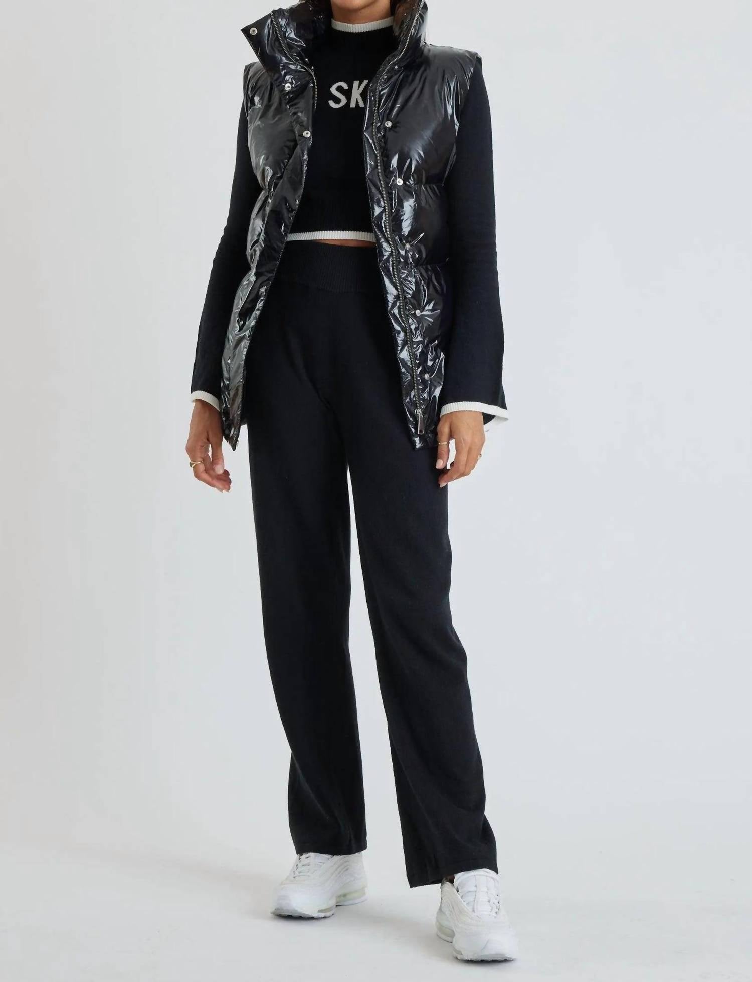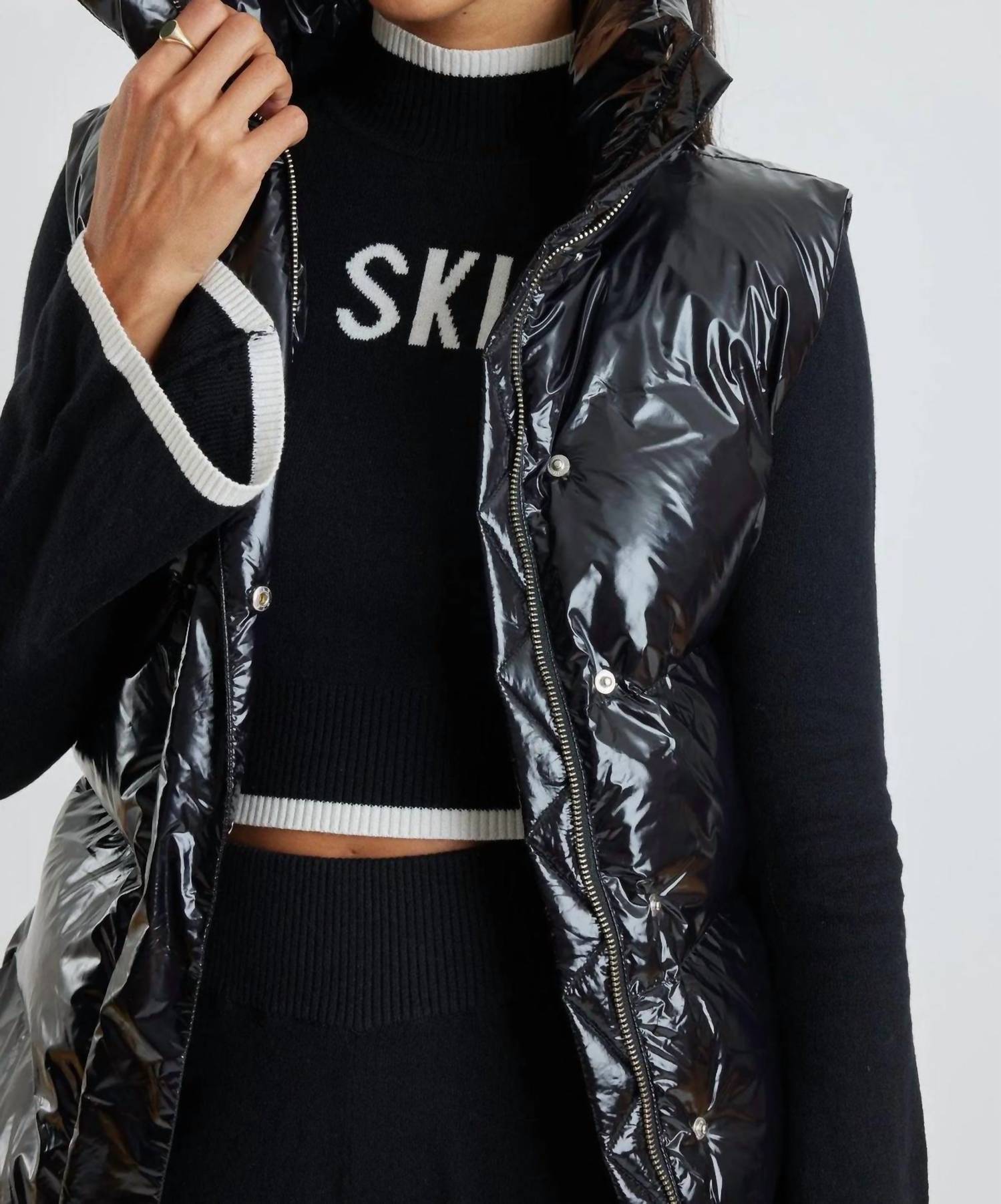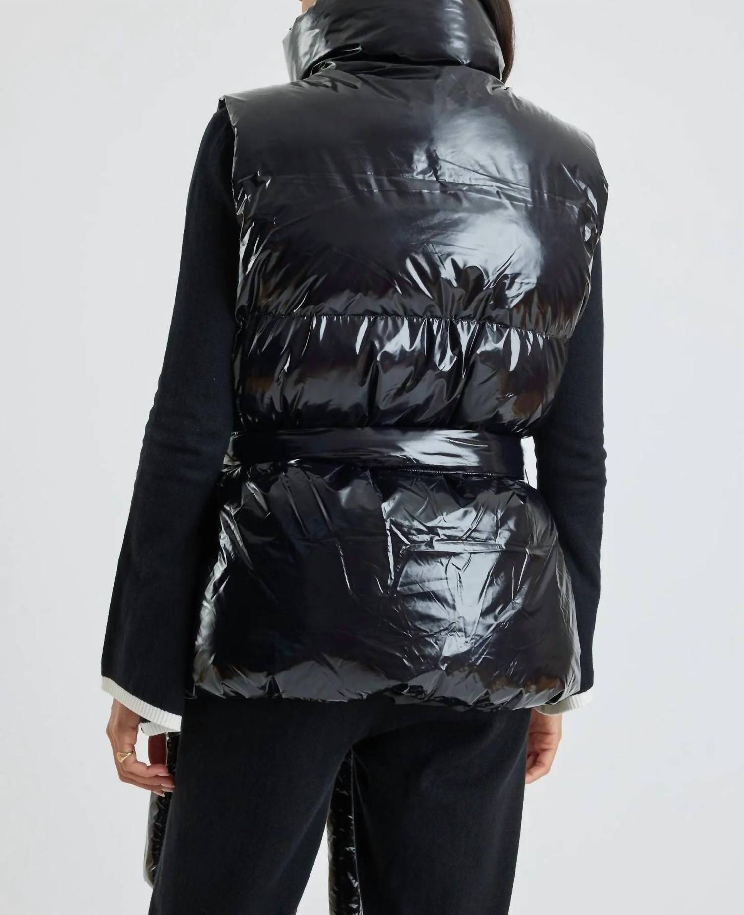 Throw this vest over an all black outfit for a perfectly polished look. Stay stylish and warm in sleek black. Designed with a turtleneck and sleeveless cut. Features a quilted design and optional tie self-belt for customizable wear. Crafted from 100% nylon with a 100% polyester lining. Offers snap flap and hidden zip placket closures along with convenient zip hip and interior breast pockets. Built for practicality and comfort. Machine washable for effortless care.