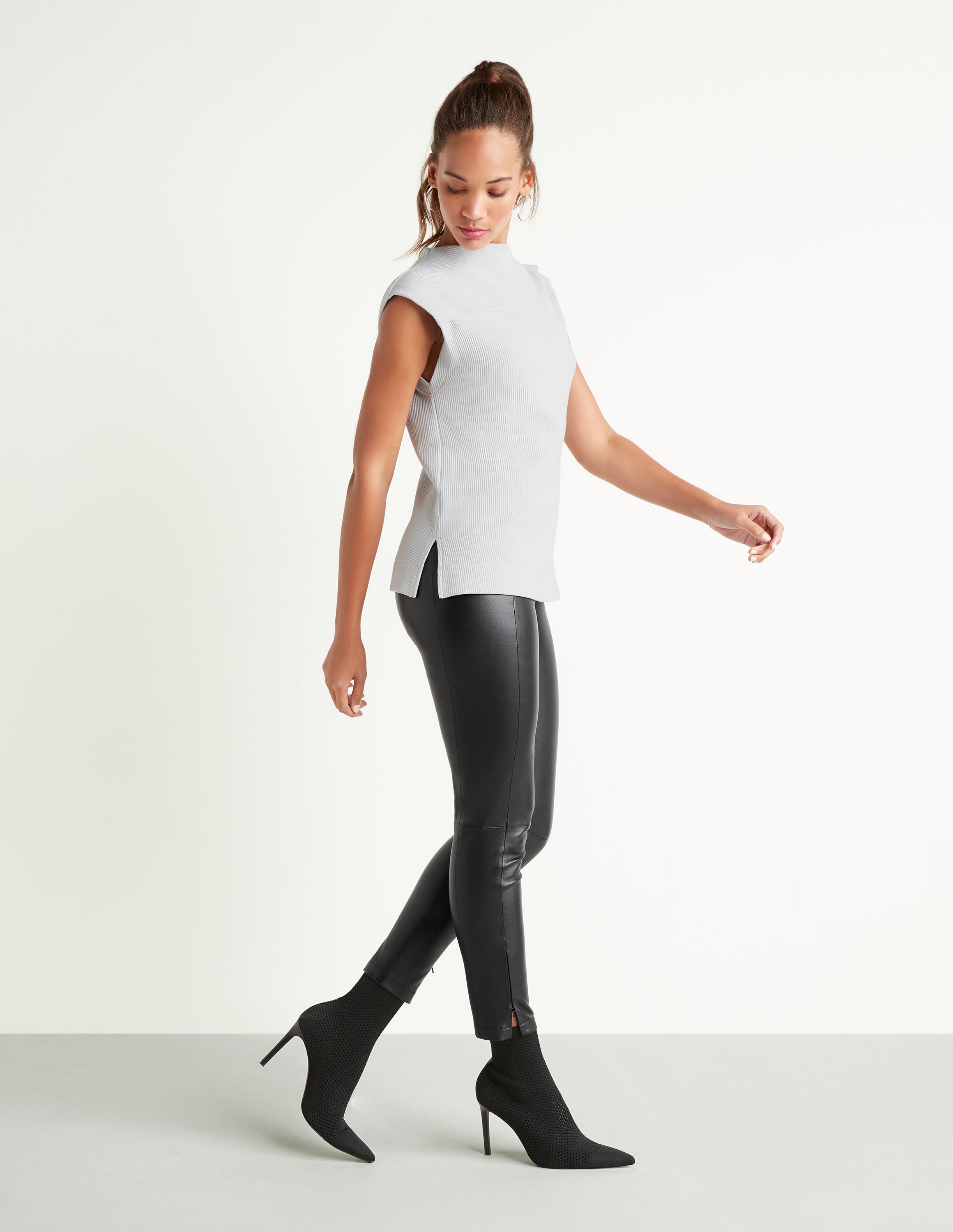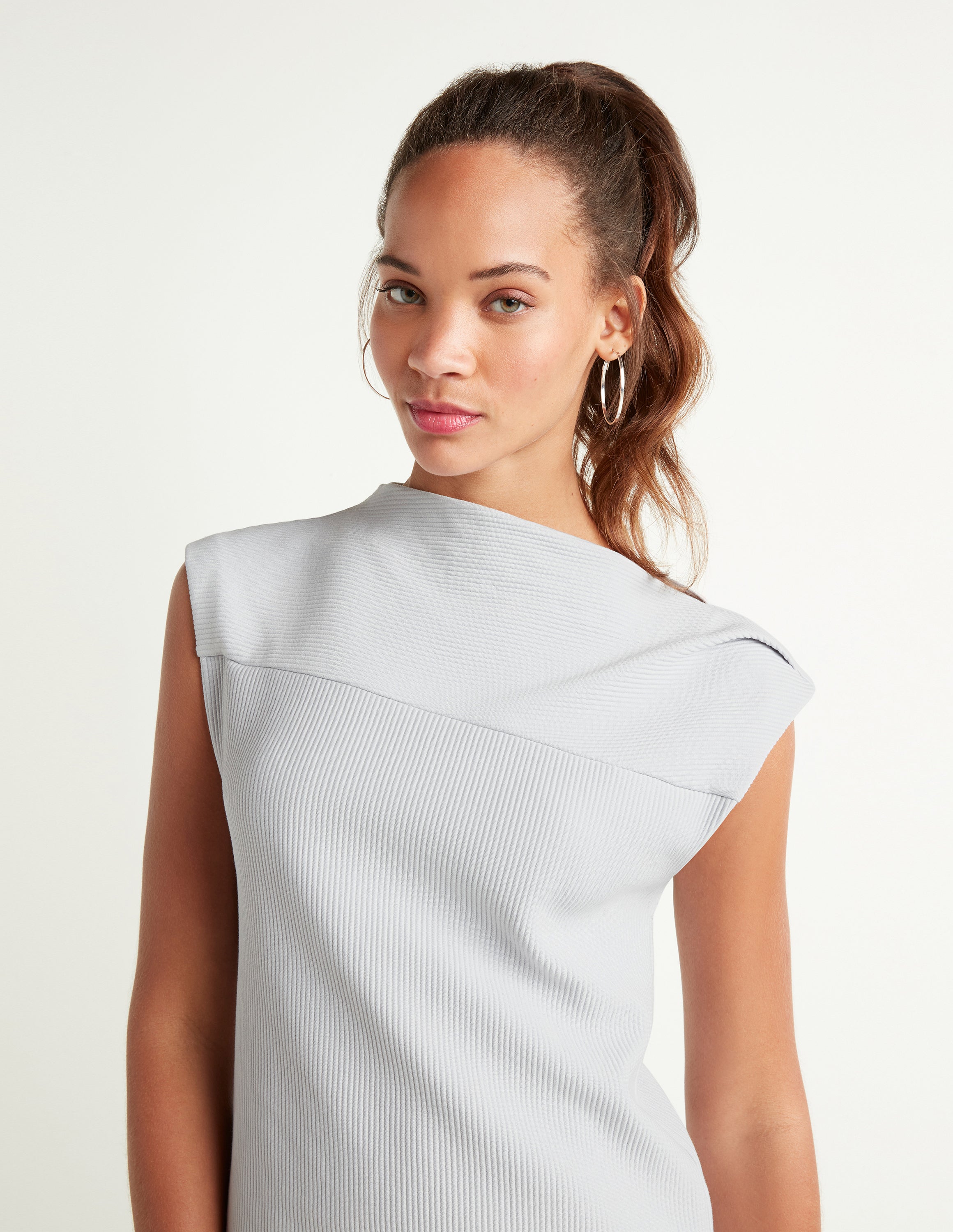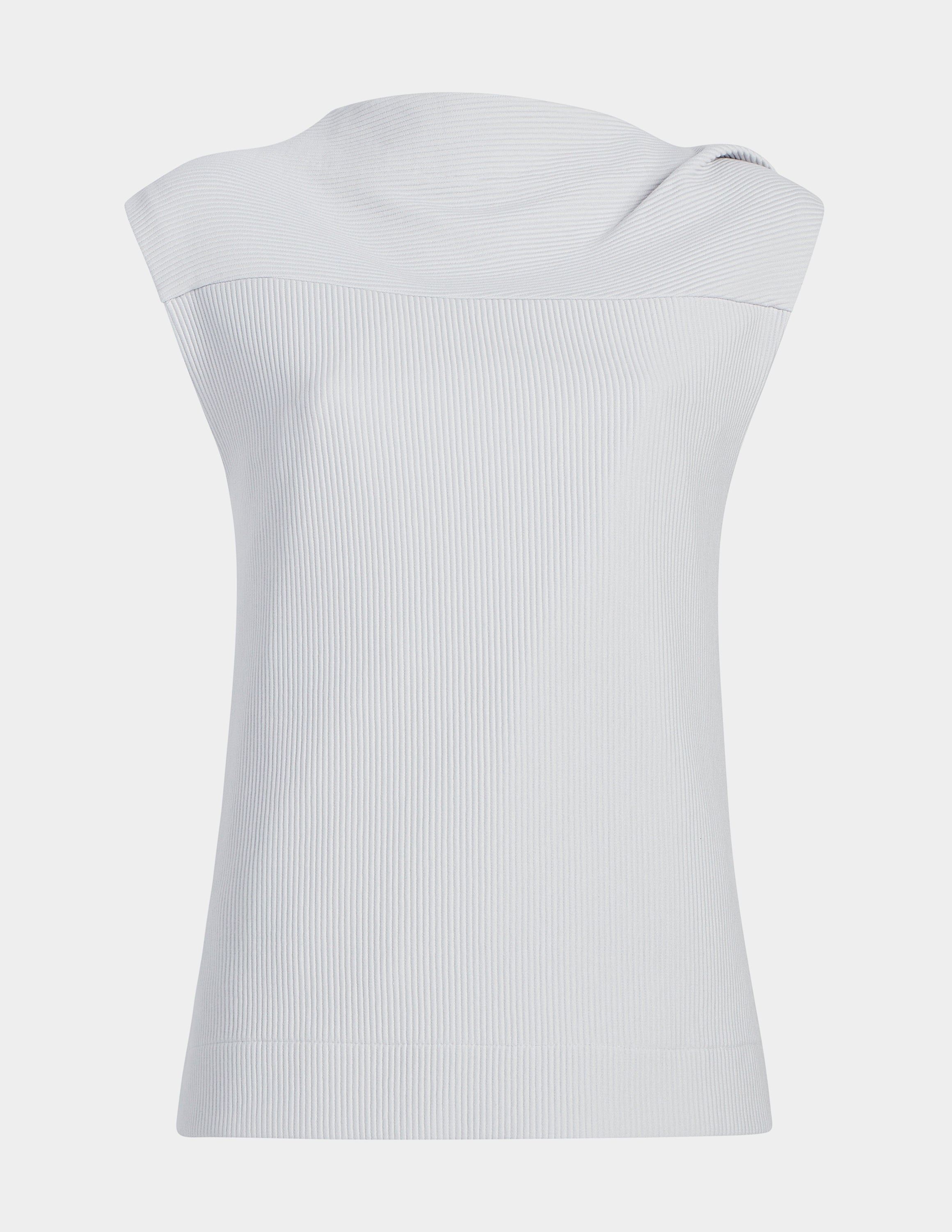 This chic, minimalist top has universal appeal: an effortless, timeless staple for when you're craving athletic wear but need something more sophisticated. Lightweight, stretch fabric feels like your favorite performance piece and maintains its shape. The relaxed silhouette is simultaneously figure-skimming, with smart details, such as the two-way ribbing and an architectural, asymmetric neck.