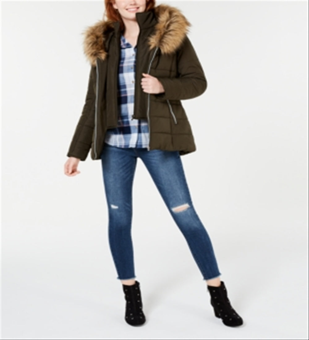 Maralyn & Me Women's Faux Fur Puffer Coat Green Size Medium