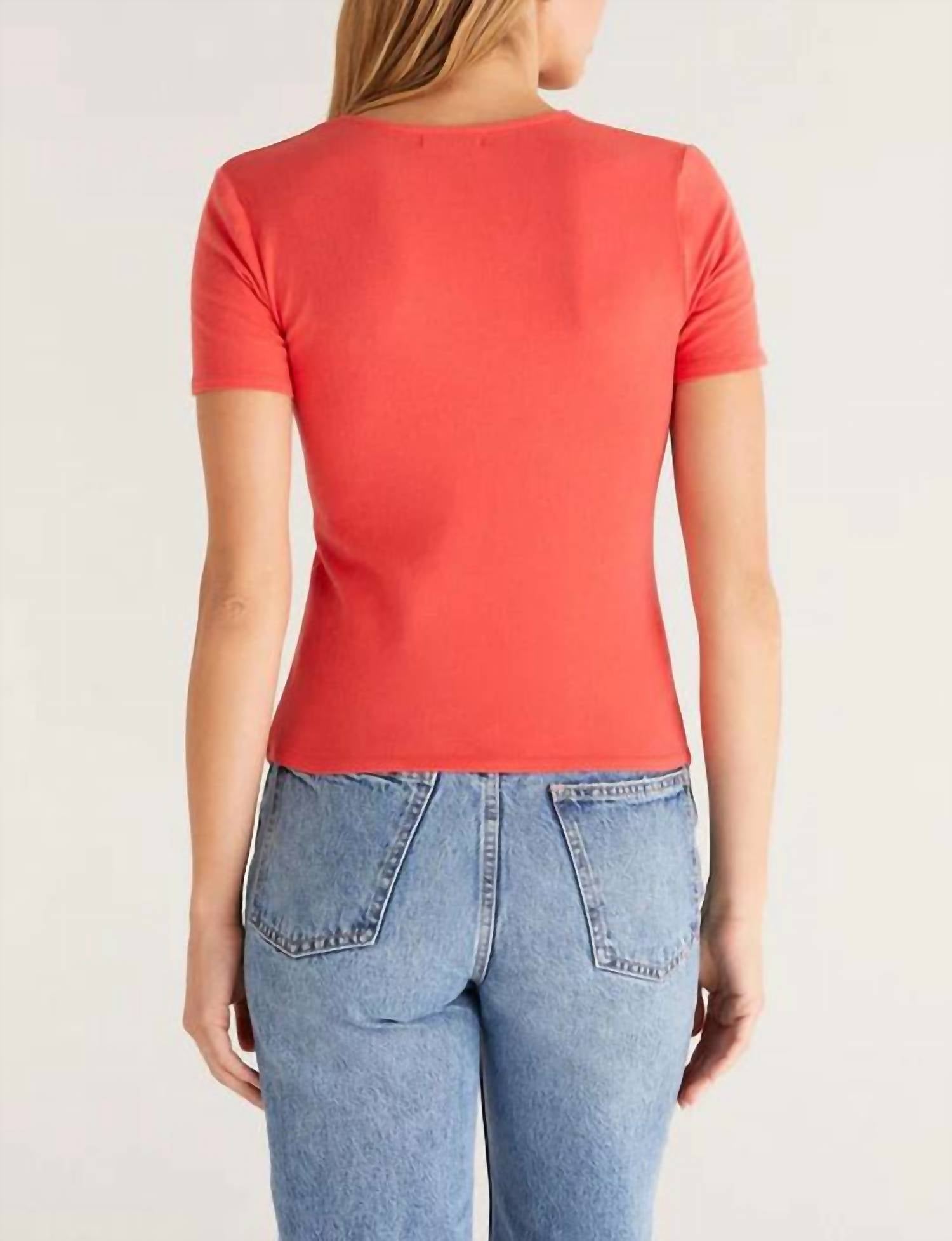 Look no further, you just found your perfect tee!Slim Fit. Model is wearing a Size S. Machine wash cold. 95% Cotton 5% Spandex