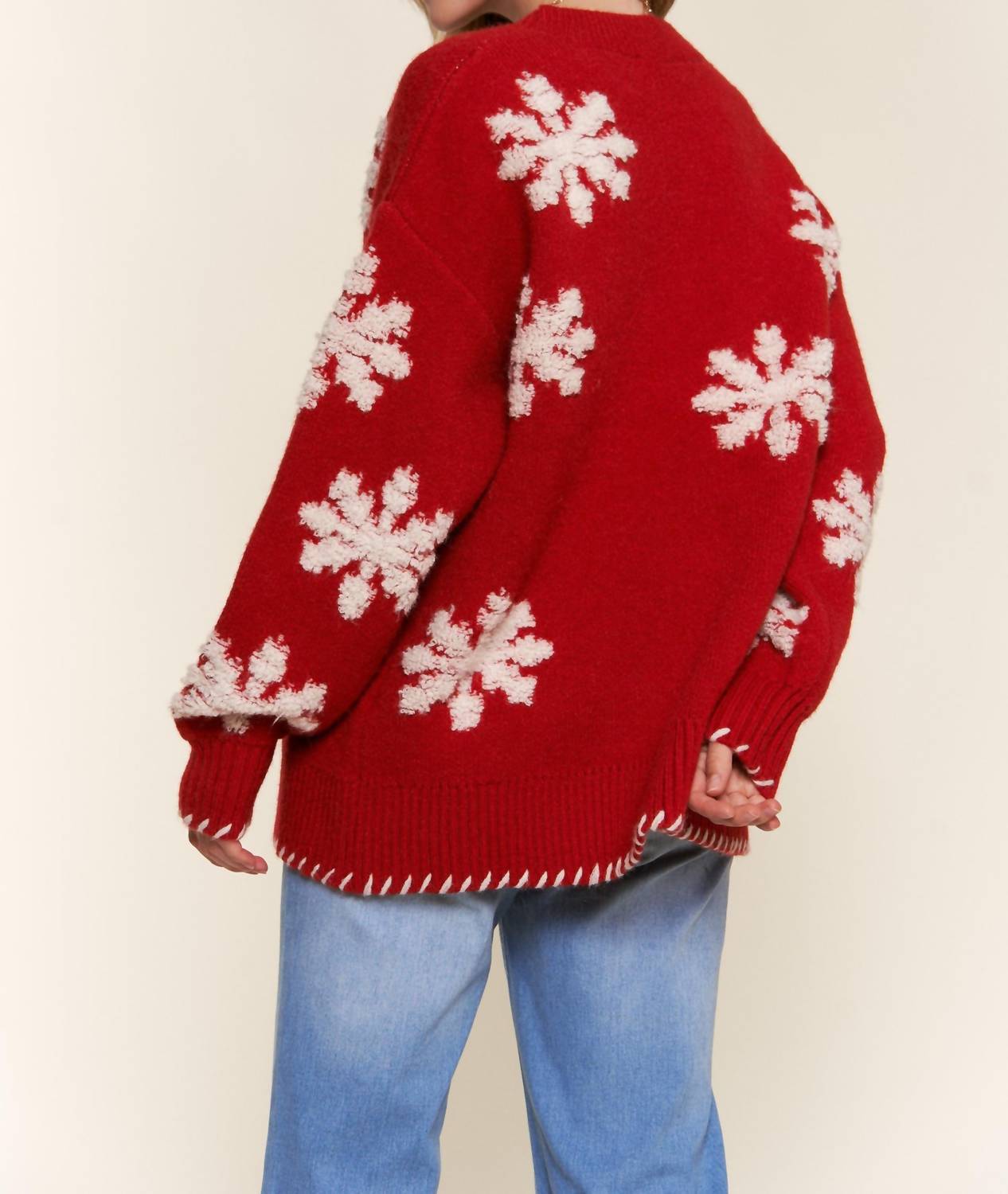 Embrace the festive spirit with the And The Why Textured Snow Flakes Pullover Sweater in a vibrant red hue. This long sleeve knit pullover is adorned with textured snowflakes, exuding a cozy holiday charm perfect for winter gatherings. Designed for effortless wear, it features a classic crewneck and pull-on closure. Care for it easily with machine wash instructions, ensuring you stay stylish and comfortable throughout the season.